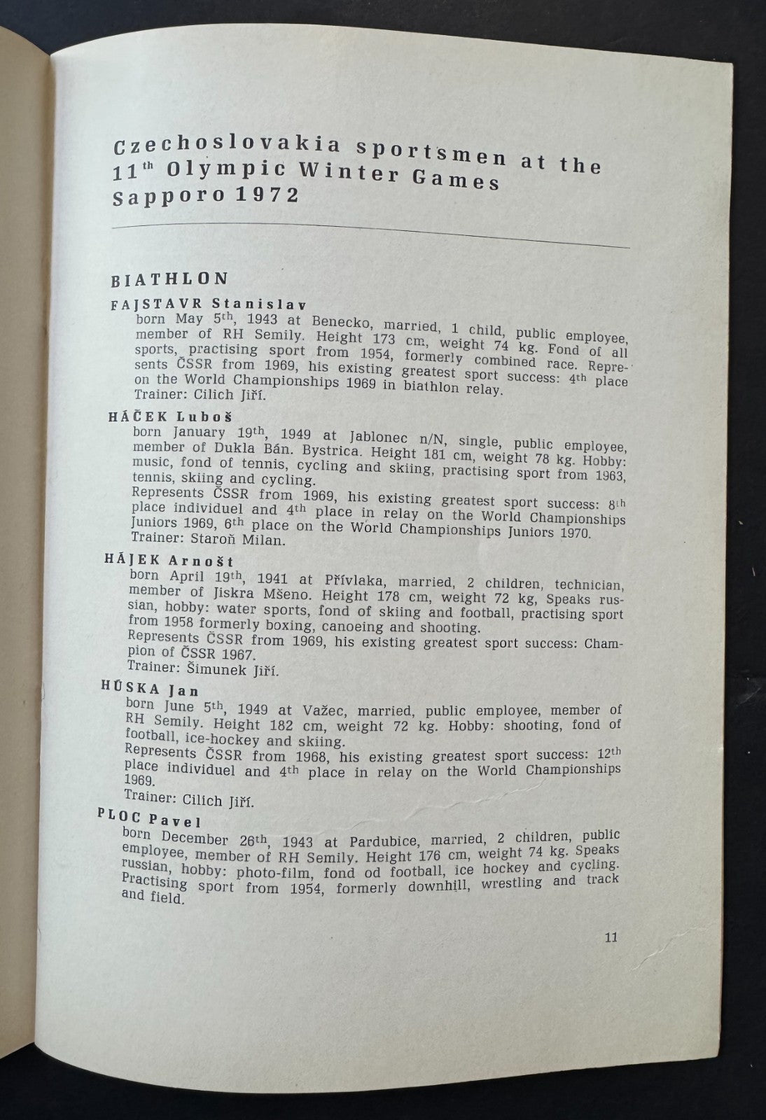 - 1972 Czechoslovokia Issued Winter Olympics Games Profile Guide