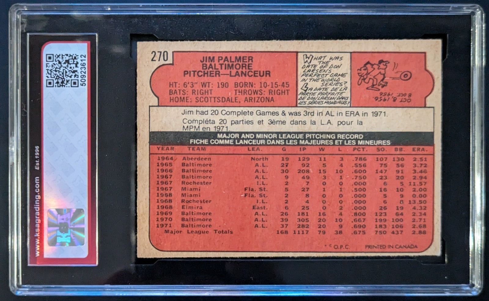 - 1972 O-Pee-Chee #270 Jim Palmer Baltimore Orioles Baseball Card