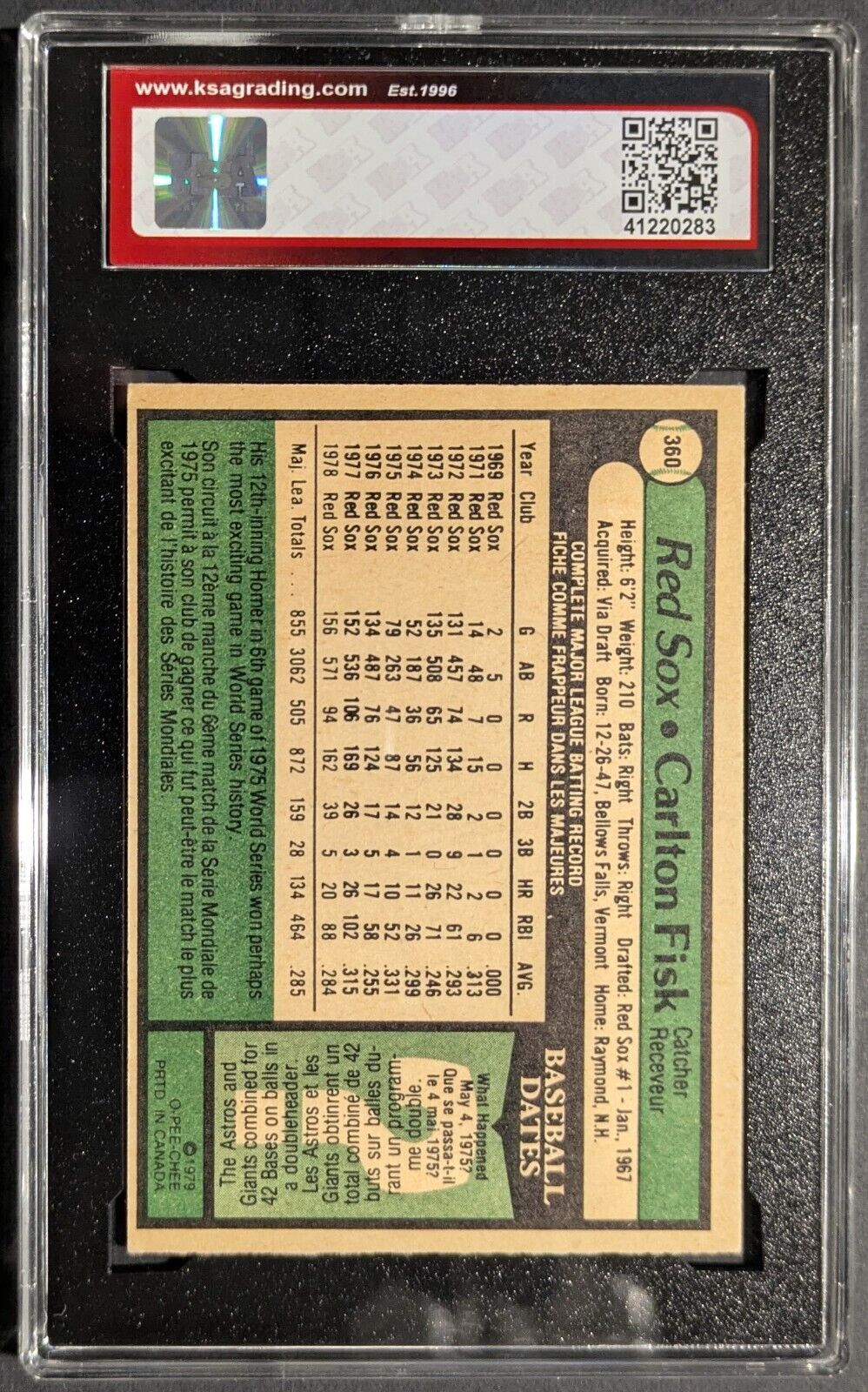 - 1979 O-PEE-CHEE OPC #360 Carlton Fisk All-Star Card KSA 7 NM
