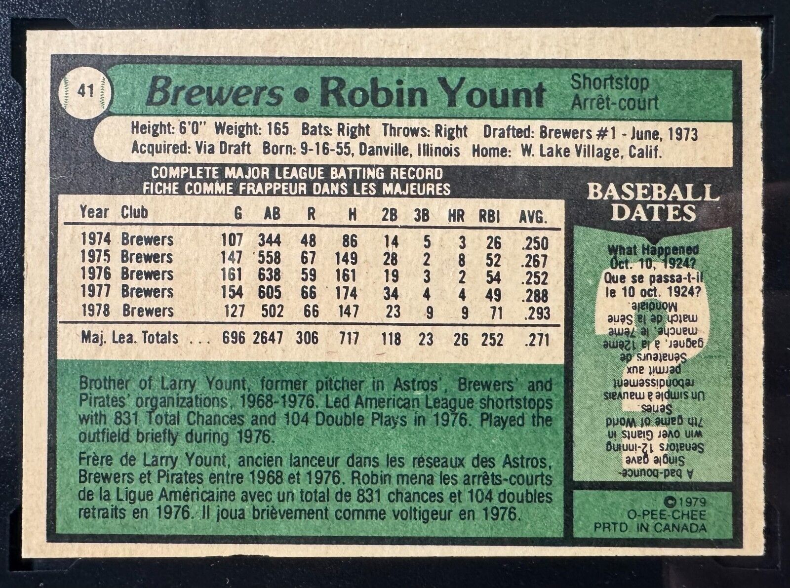 - 1979 O-PEE-CHEE #41 Robin Yount Card KSA 7 NM