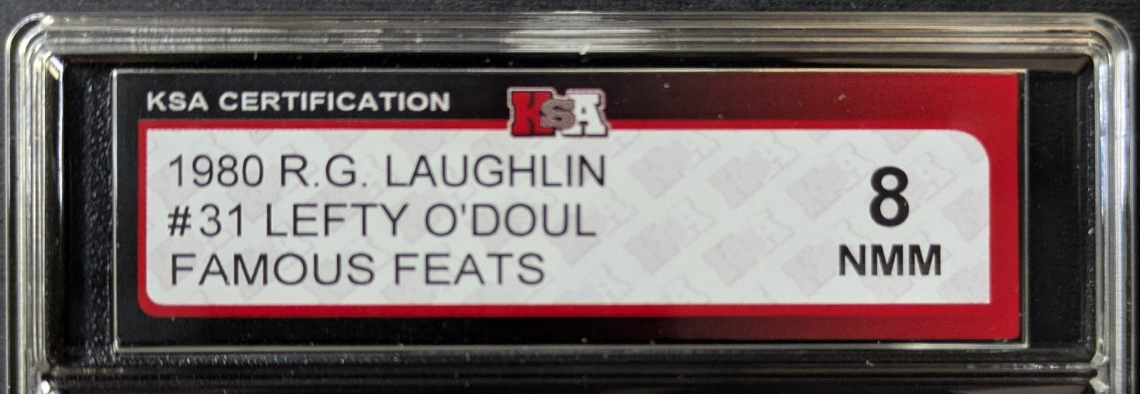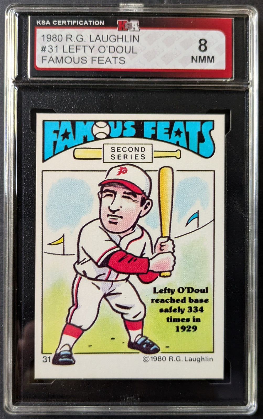 1980 R.G. Laughlin #31 Lefty O'Doul Famous Feats Baseball Card KSA 8 NMM MLB
