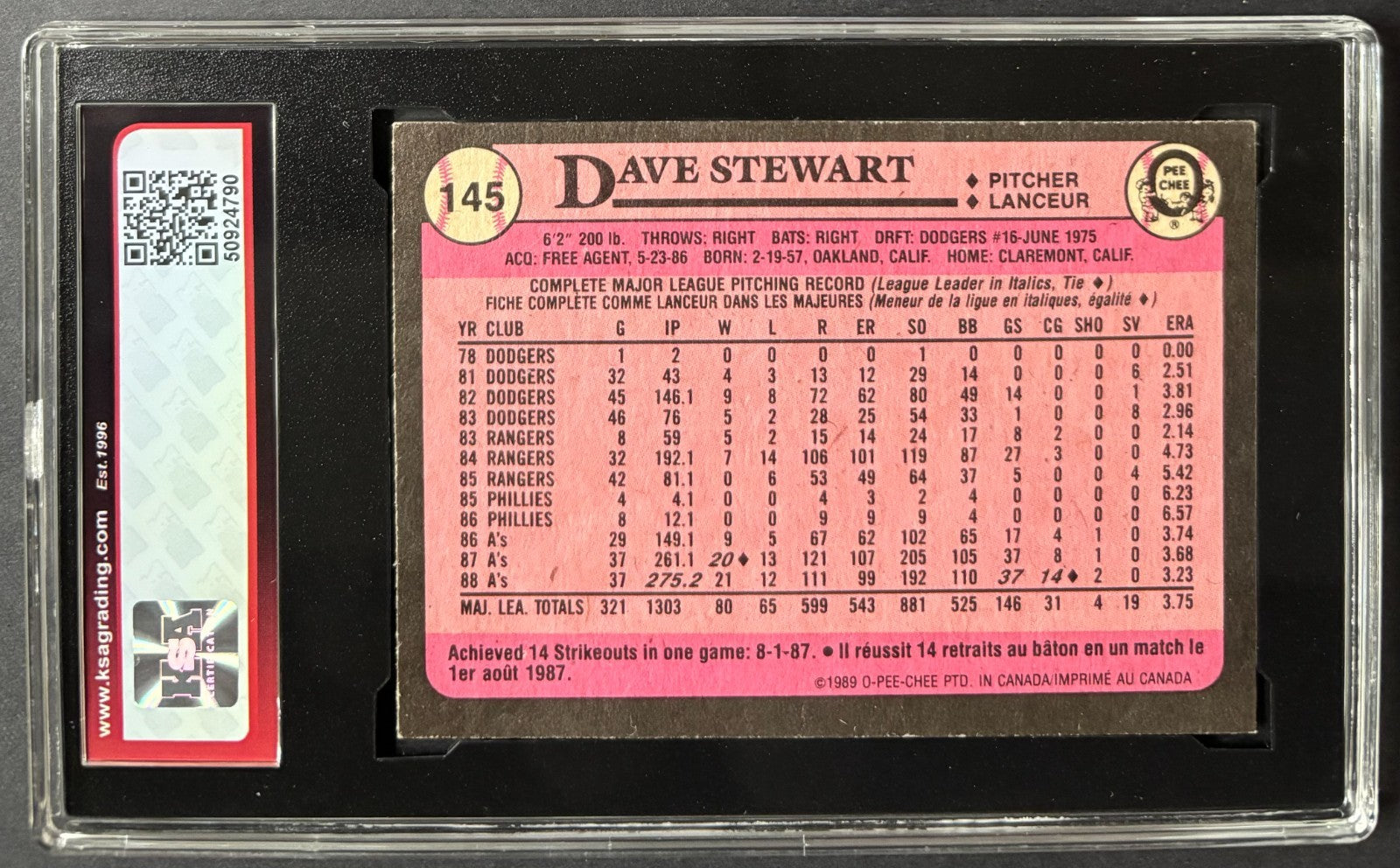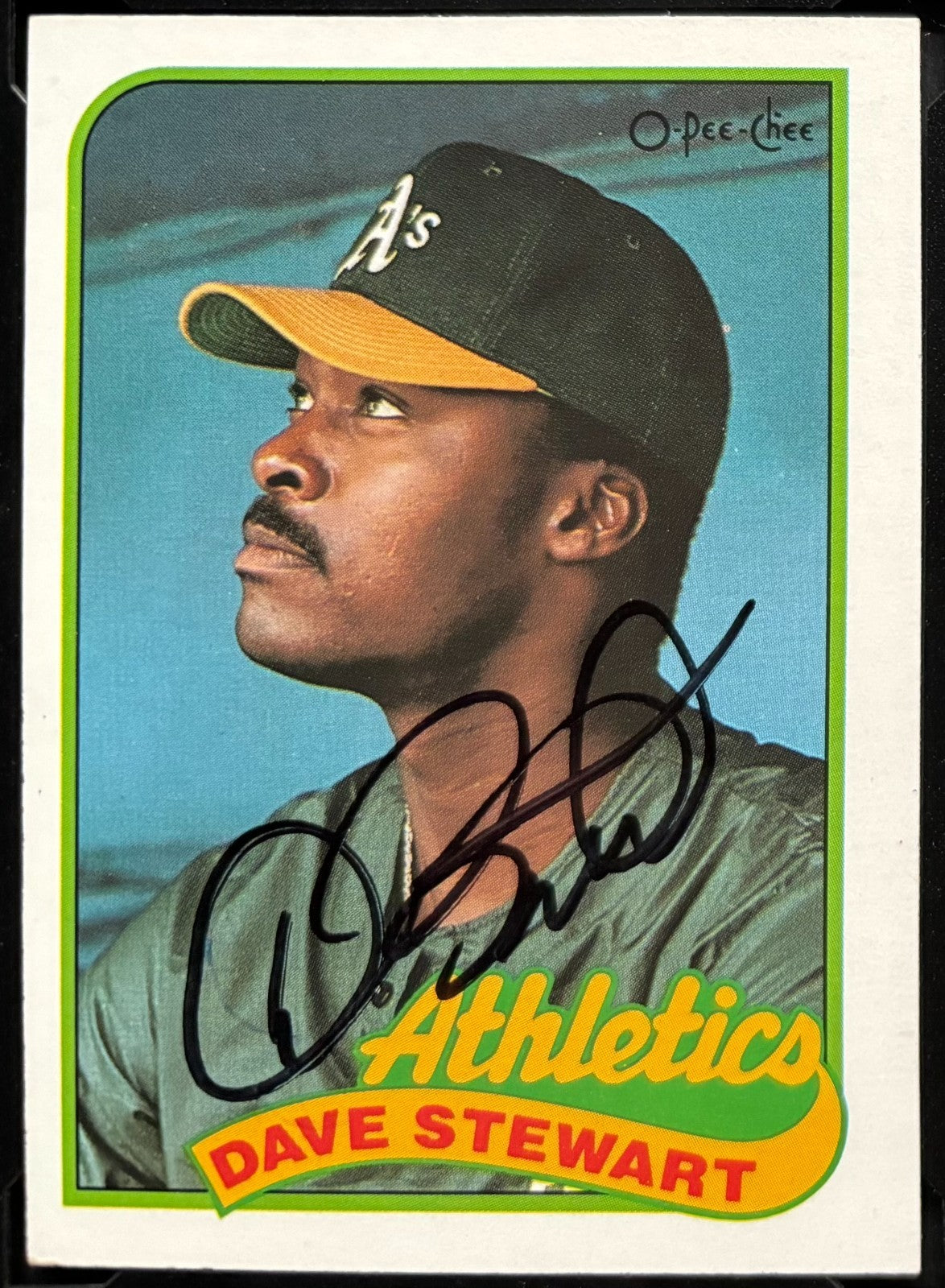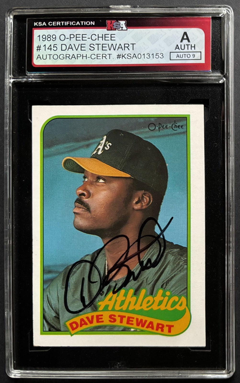 - 1989 O-Pee-Chee #145 Dave Stewart card hard-signed by Stewart in black marker