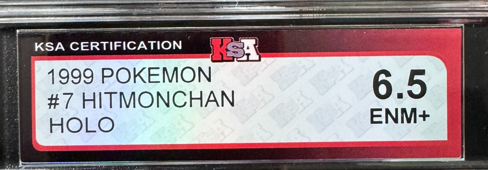 1999 Pokemon #7 Hitmonchan Holo Trading Card KSA 6.5 ENM+ PTCG Game