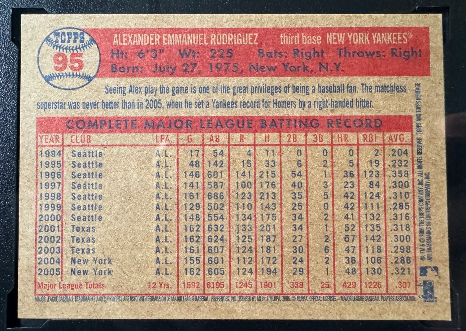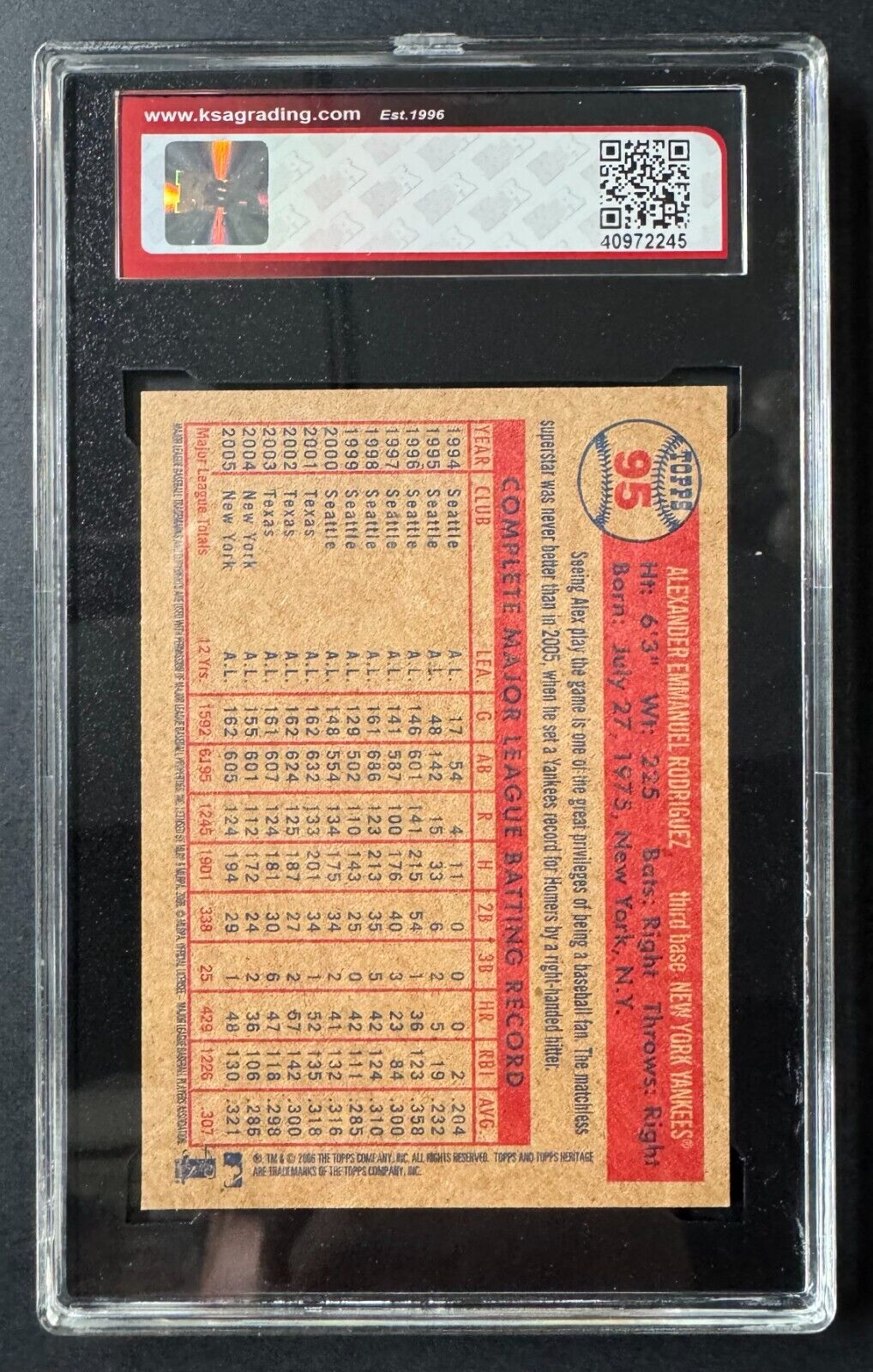 - 2006 Topps Heritage #95 Alex Rodriguez With Bat KSA 8.5 NMM+
