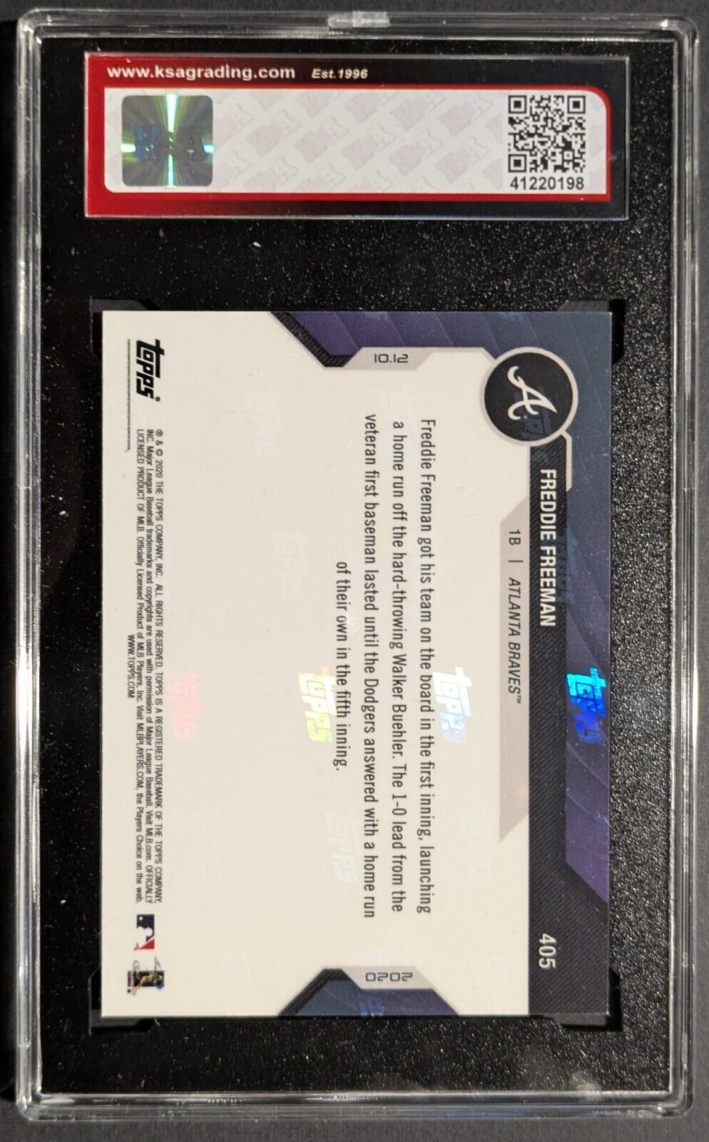 - 2020 Topps Now #405 Freddie Freeman Blue Card KSA 7 NM