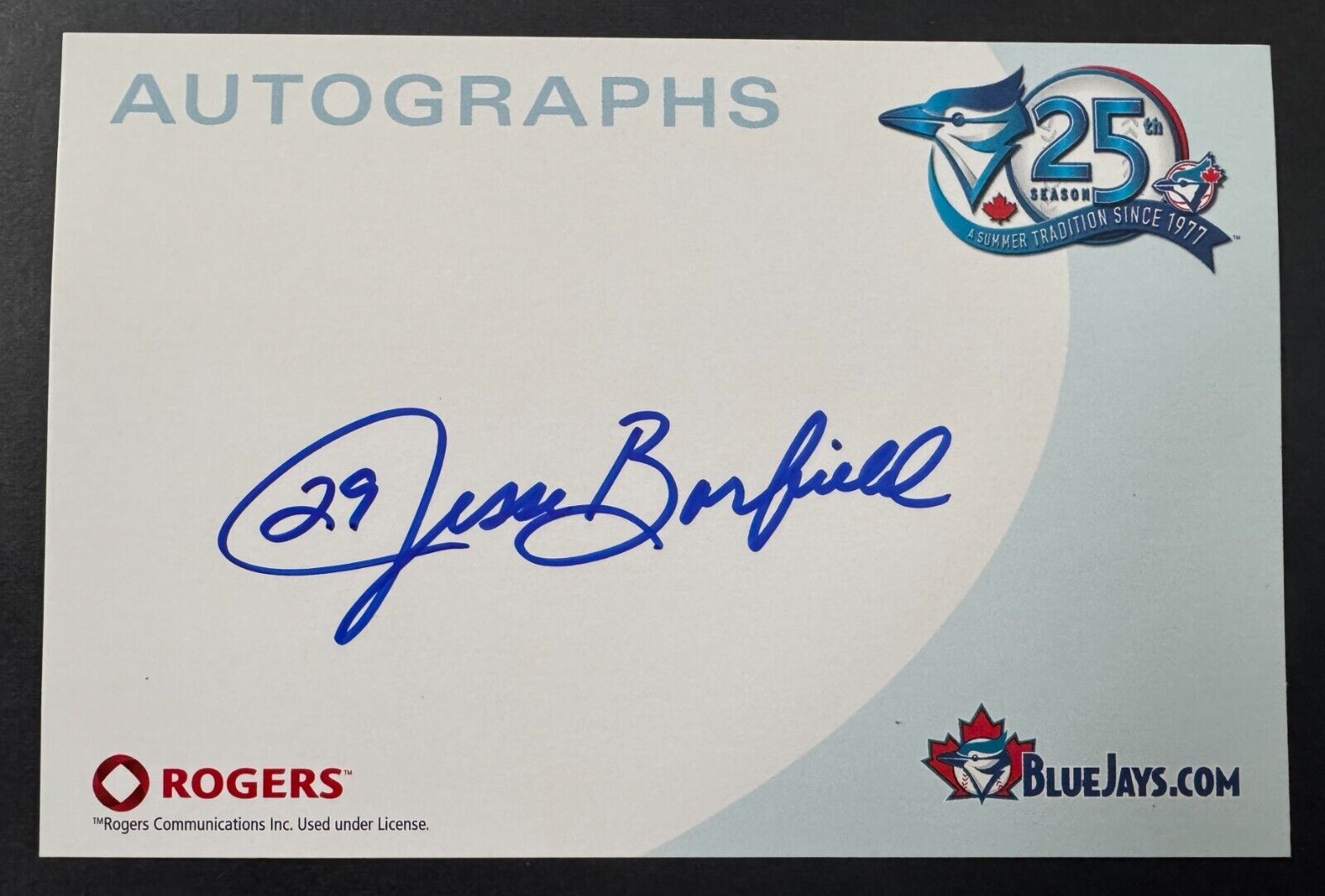 - Jesse Barfield signed card from Toronto Blue Jays 25th Anniversary event