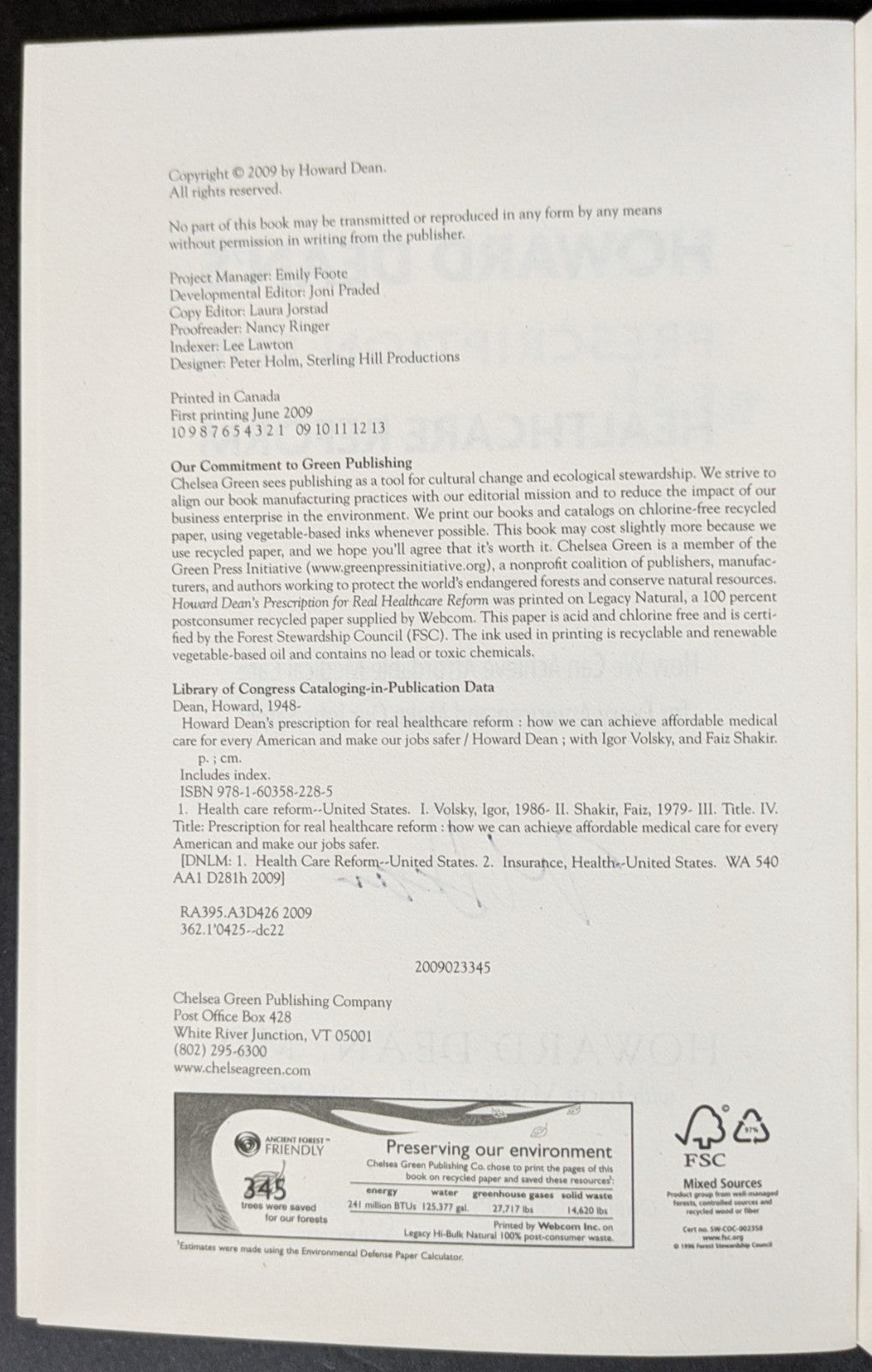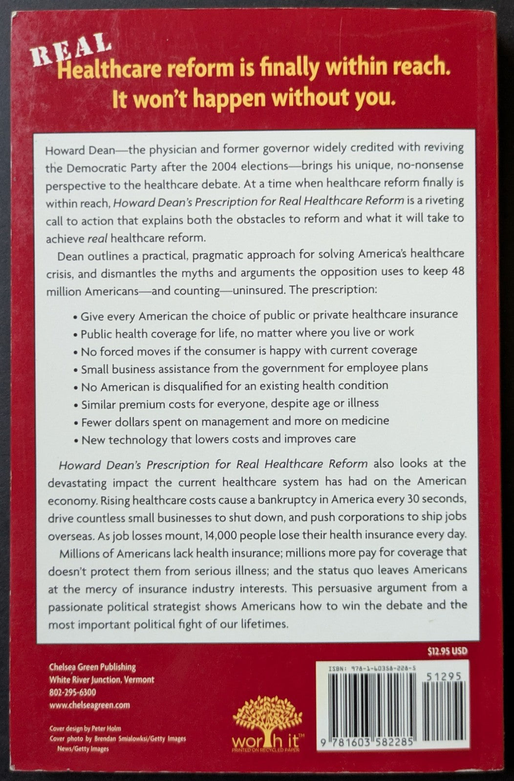 - MD Howard Dean Signed Autographed Paperback Book Prescription For Health Reform