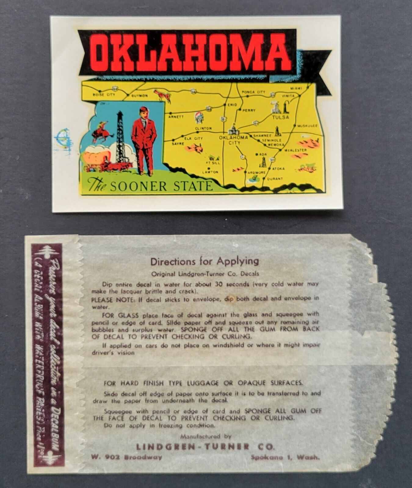 - Oklahoma State Vintage Circa 1950s Unused Car Windshield/Luggage Decal