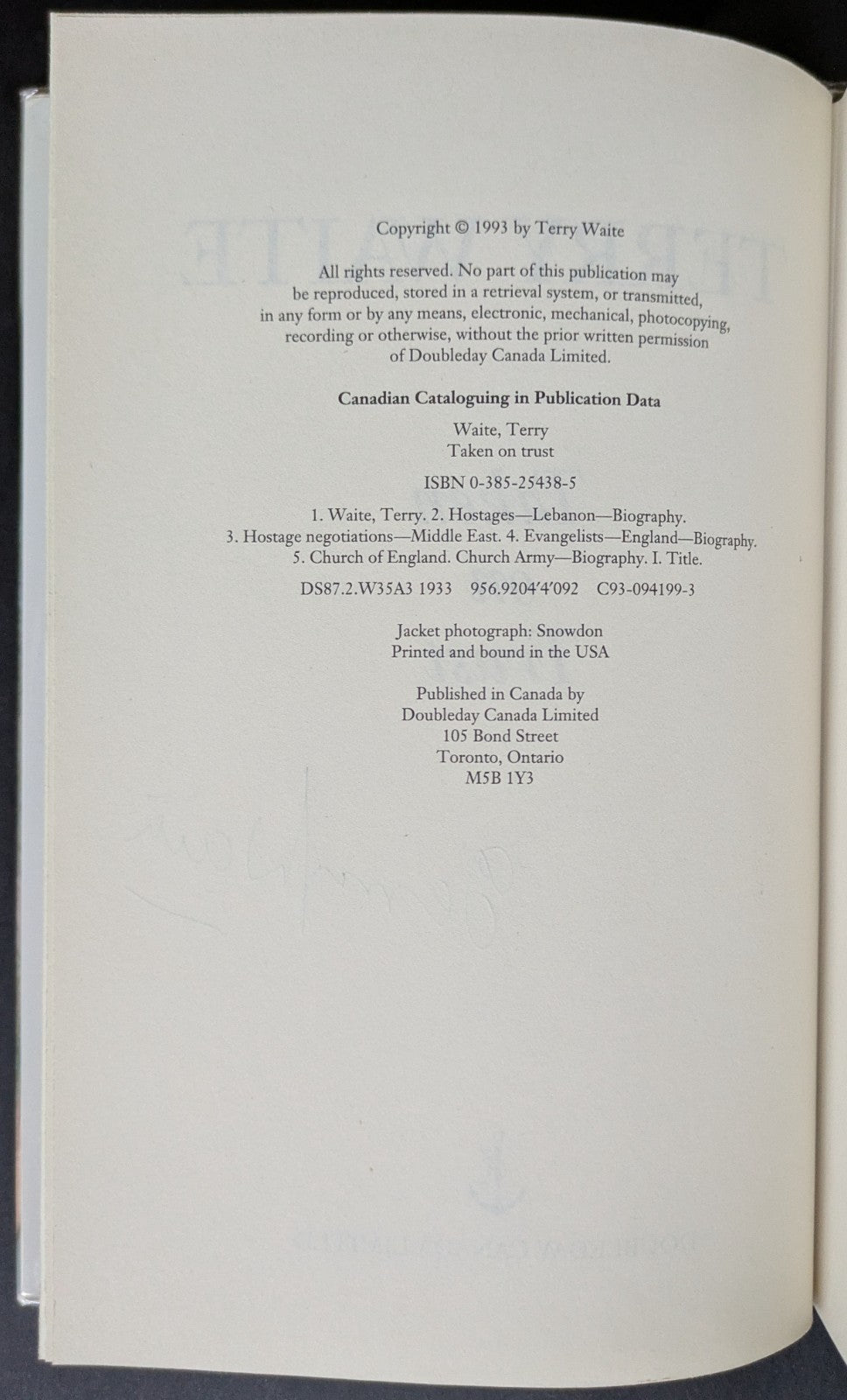 • Terry Waite Signed Autographed Hardcover Book Taken On Trust