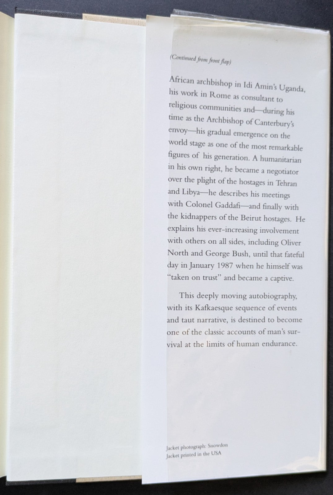 Terry Waite Signed Autographed Hardcover Book Taken On Trust Activist