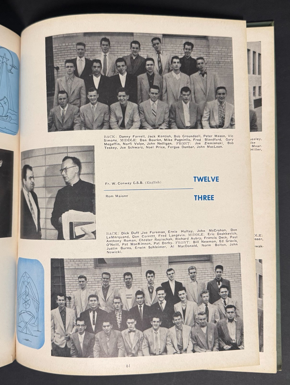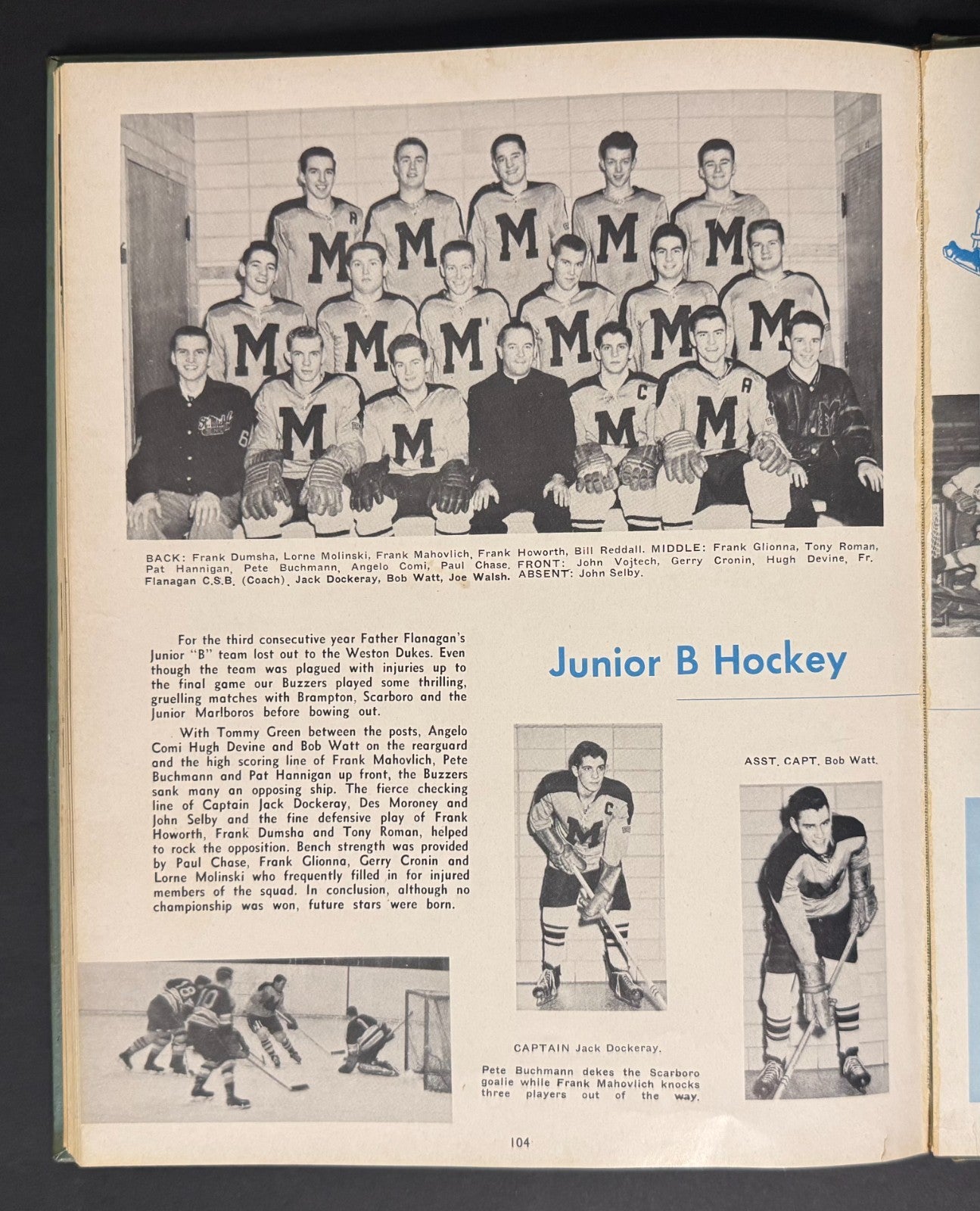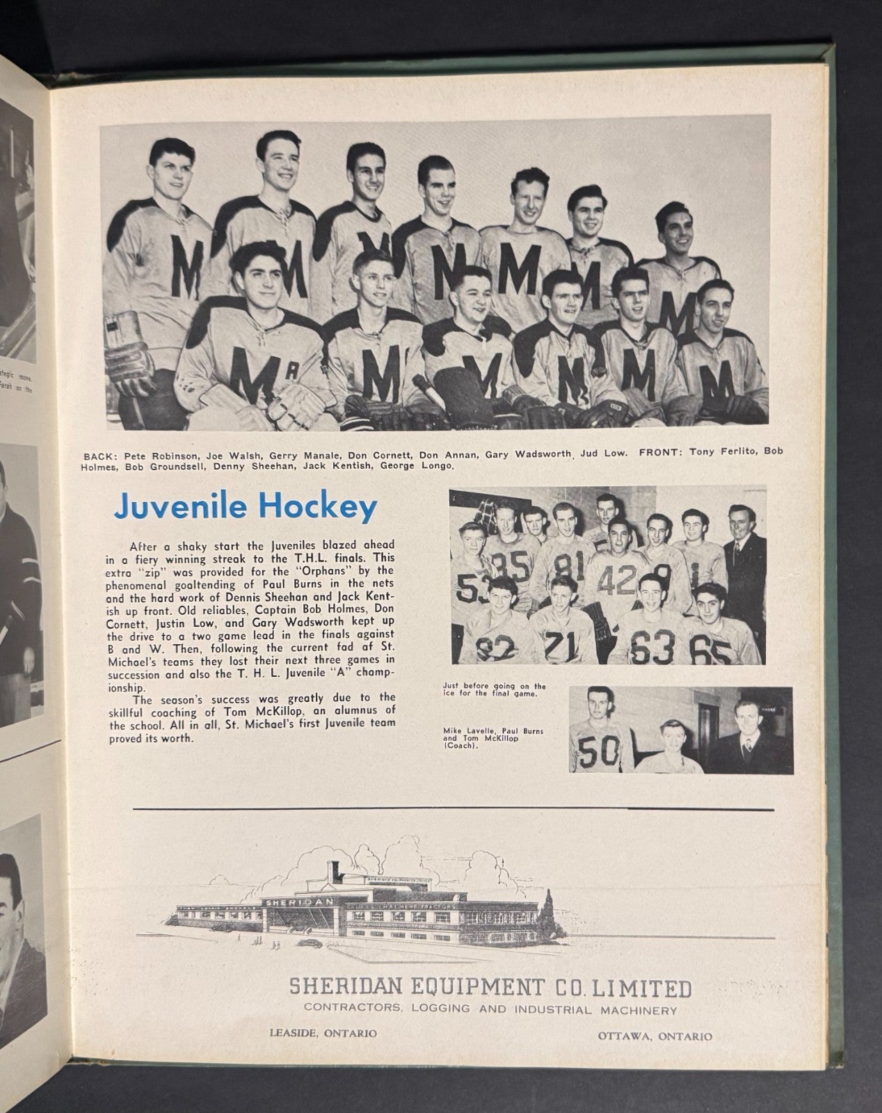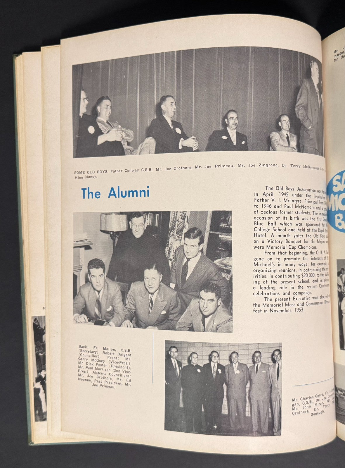 - Vintage 1953-54 St. Michael's College Yearbook featuring many notable students primarily hockey players including: Frank Mahovlich HOF, Dick Duff HOF, Jim Gregory, Gerry McNamara and Lou Ancotti