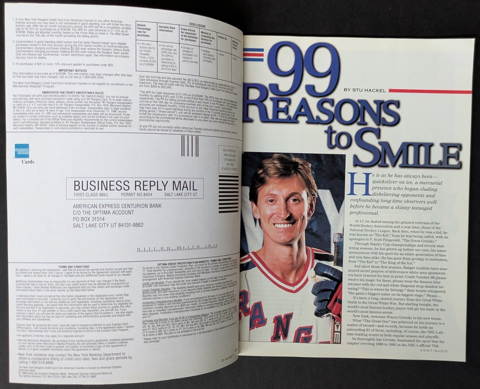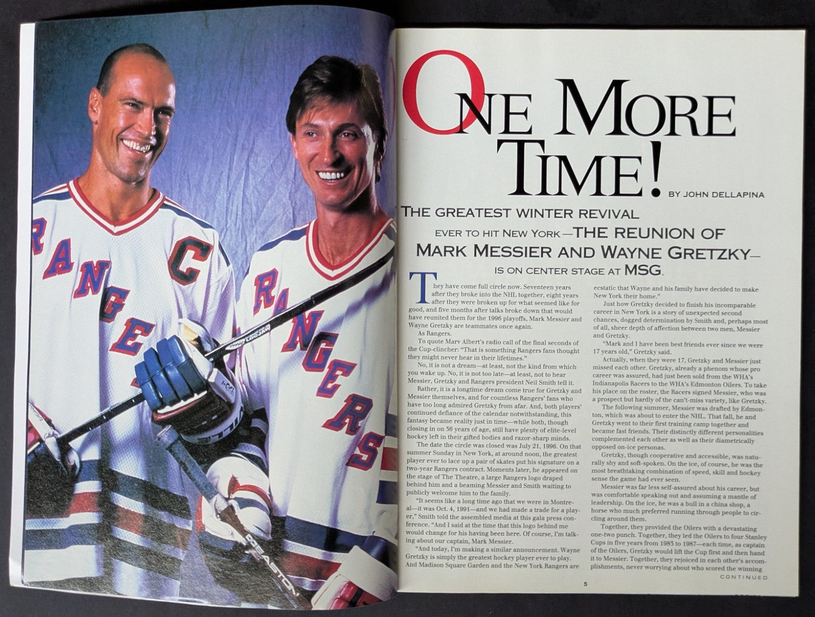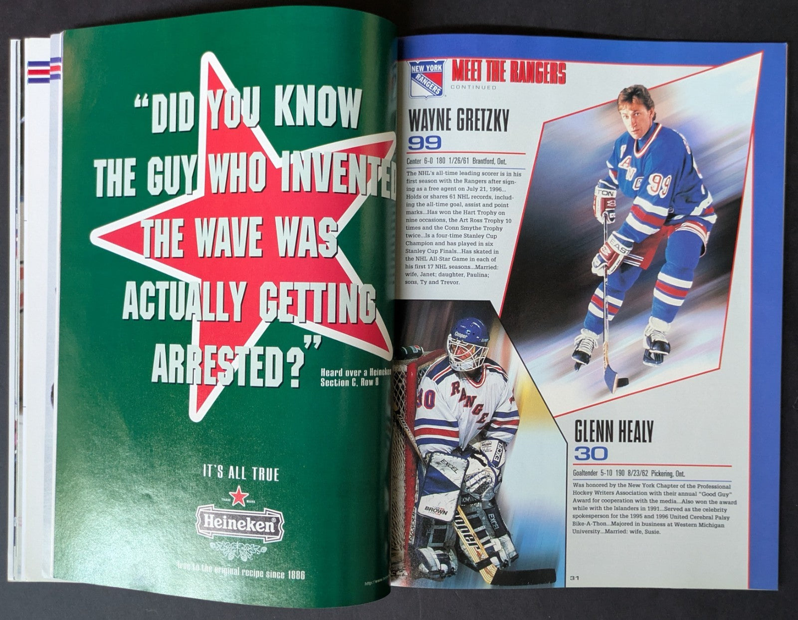 • October 6th, 1996 Wayne Gretzky Madison Square Garden program from his 1st NHL regular season game as a member of the New York Rangers