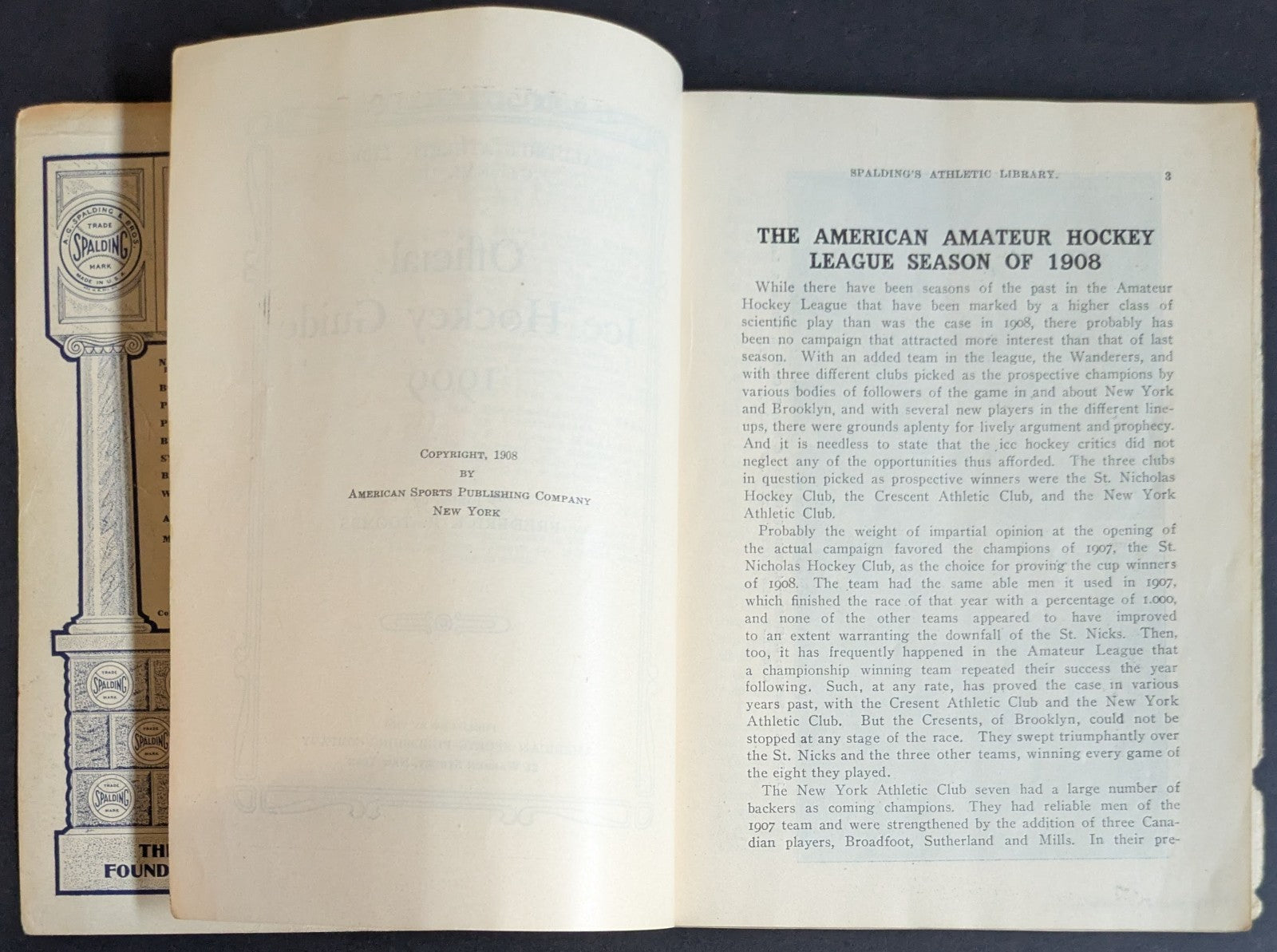 - 1909 Spalding Athletic Library Official Ice Hockey Guide