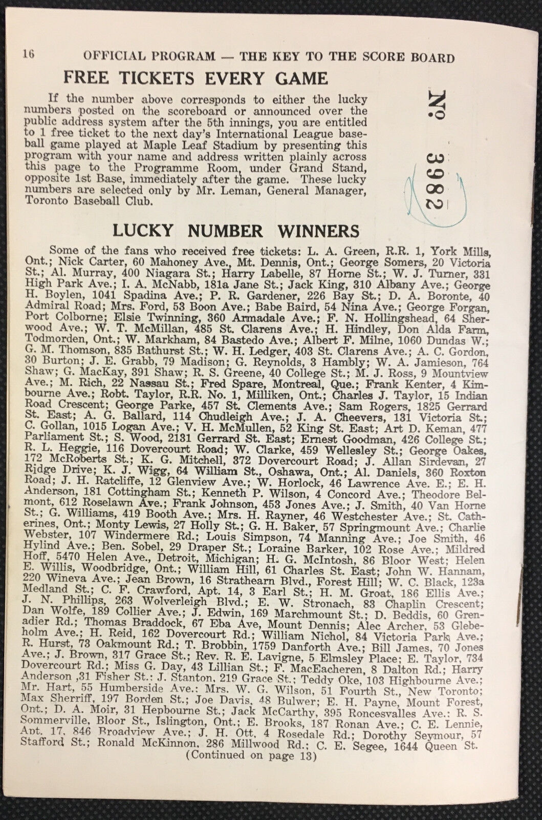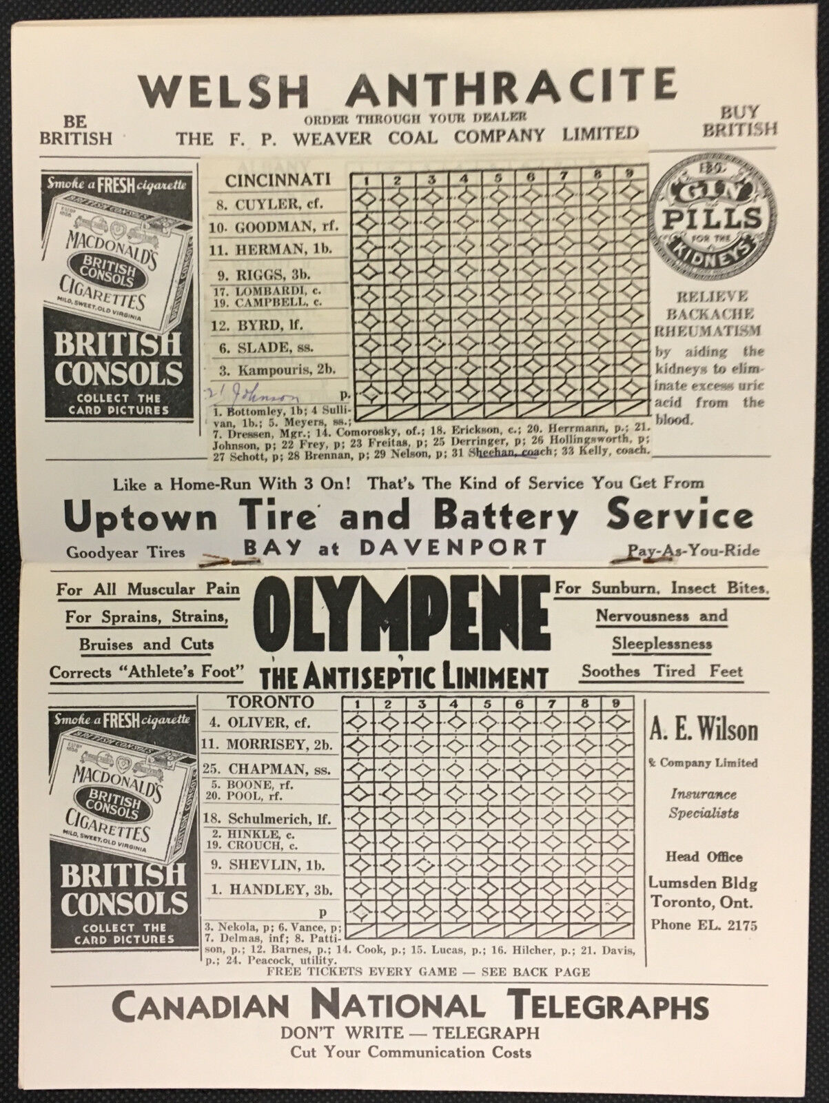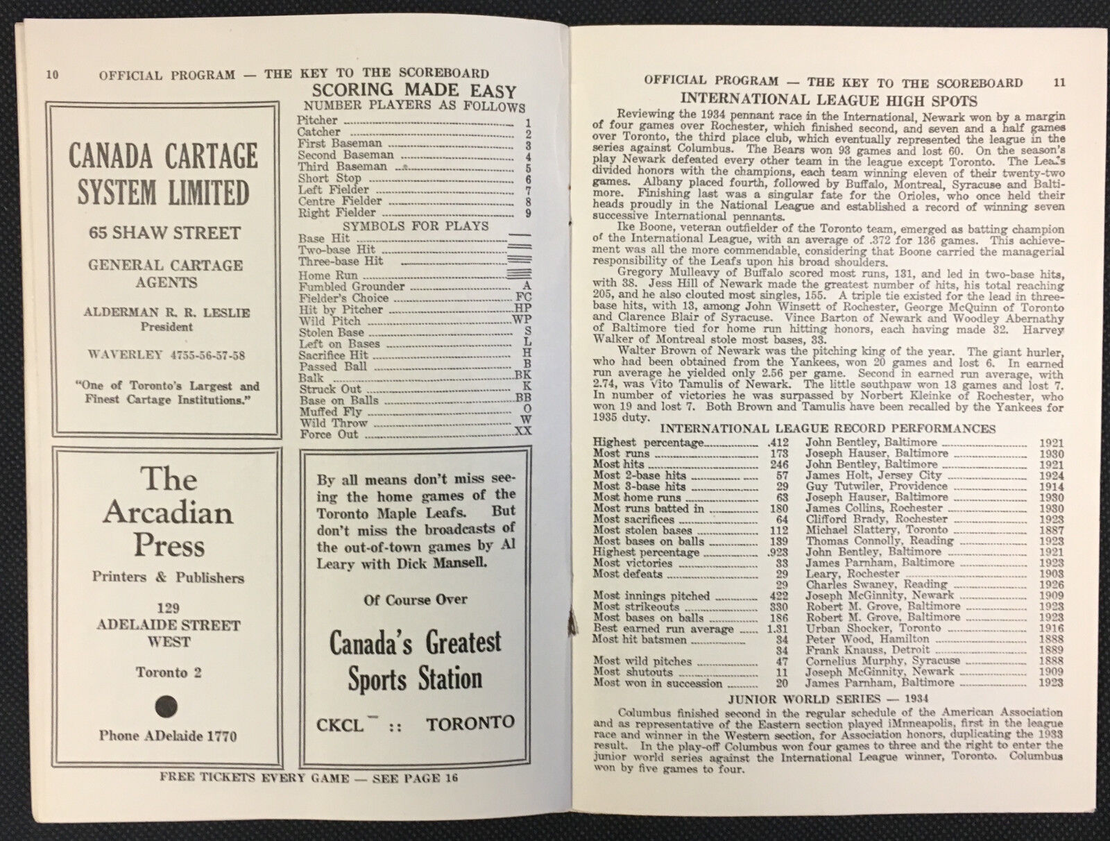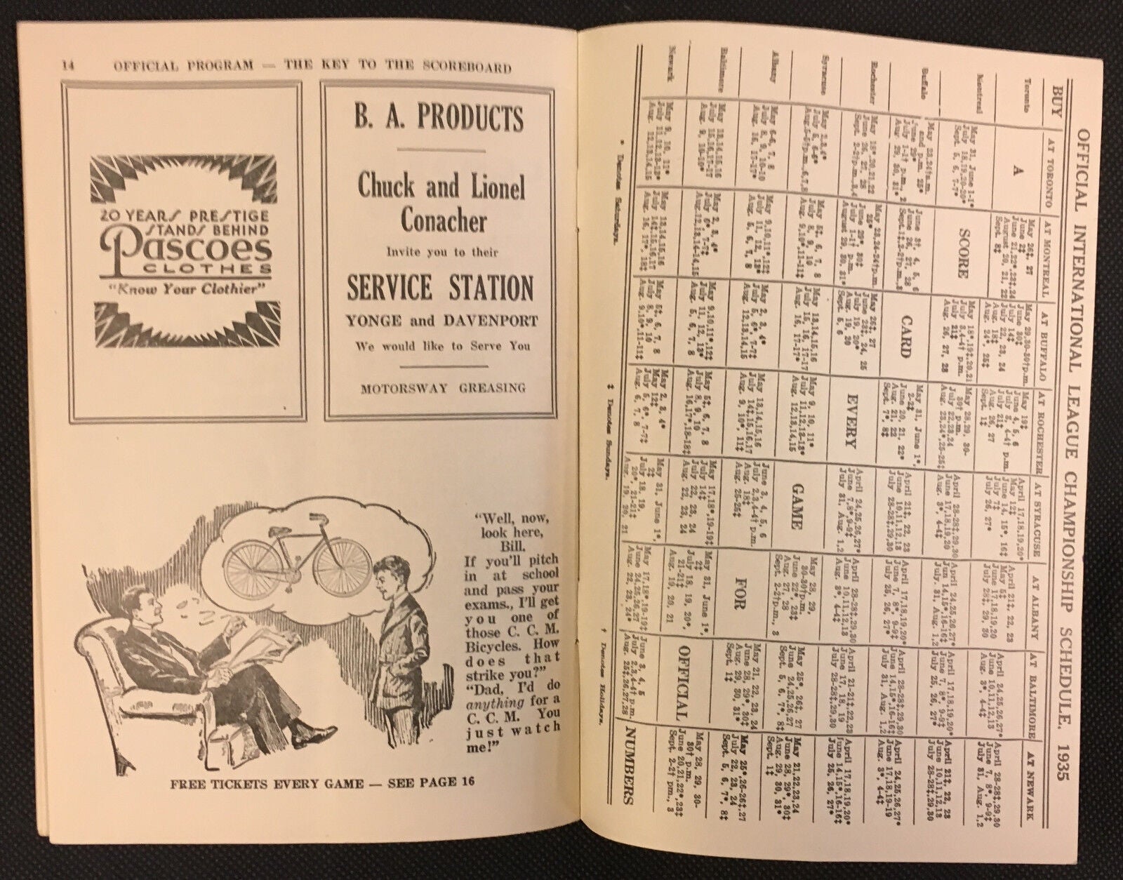 - 1935 International League baseball program from Toronto Maple Leaf Stadium