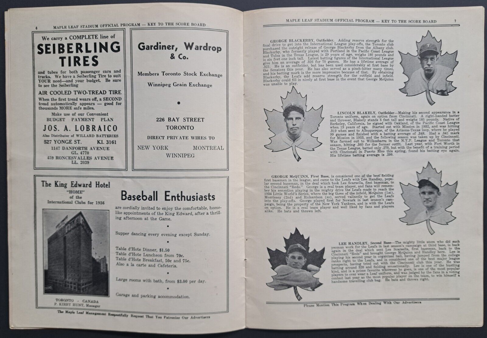 - 1936 Maple Leaf Stadium Baseball Program Maple Leafs vs Montreal Royals Vintage