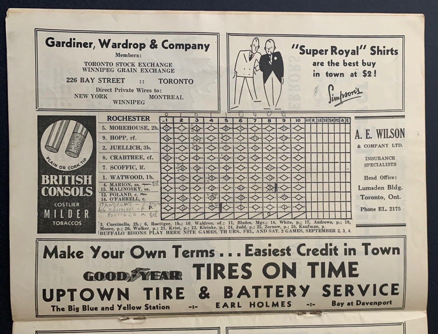 - 1937 Maple Leaf Stadium Baseball Program Maple Leafs vs Rochester Red Wings