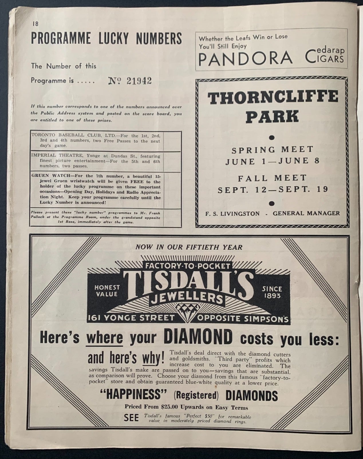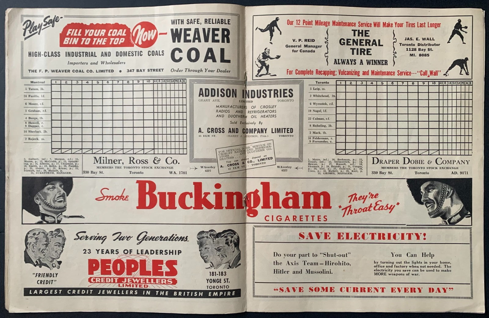 - Program for International League Baseball game between the Montreal Royals and Toronto Maple Leafs at Maple Leaf Stadium