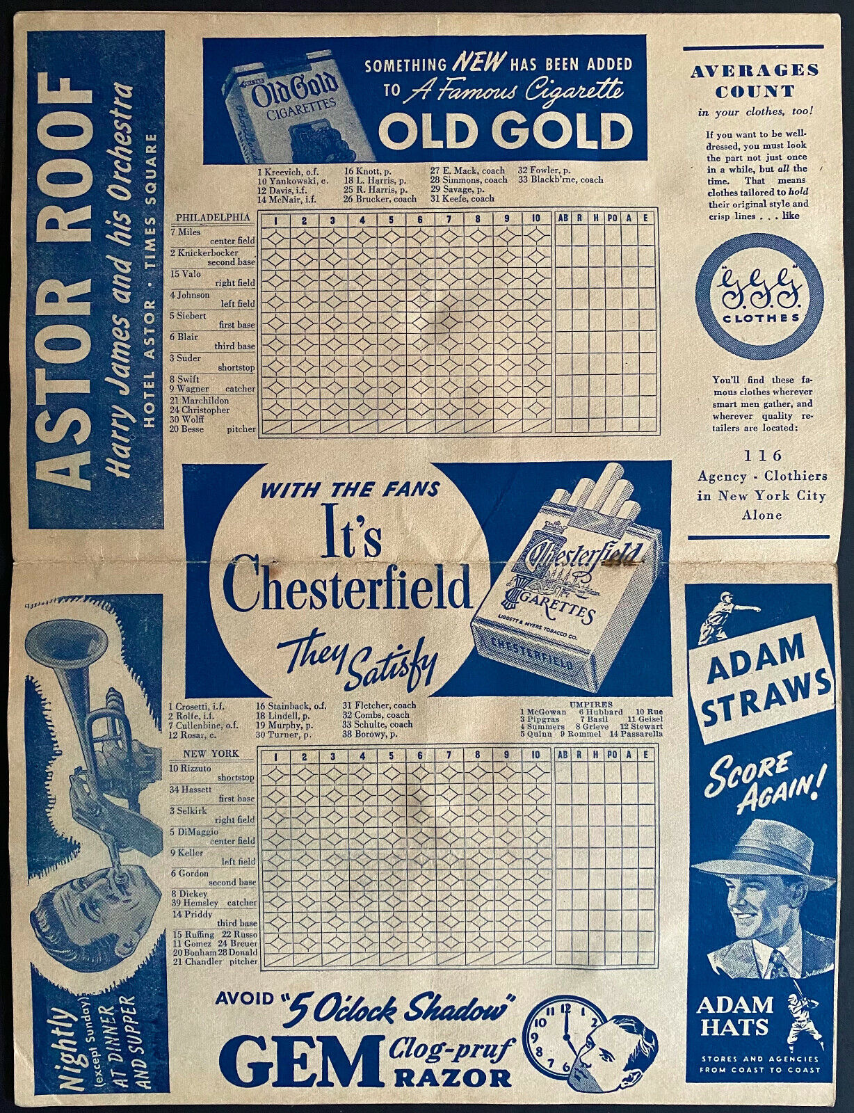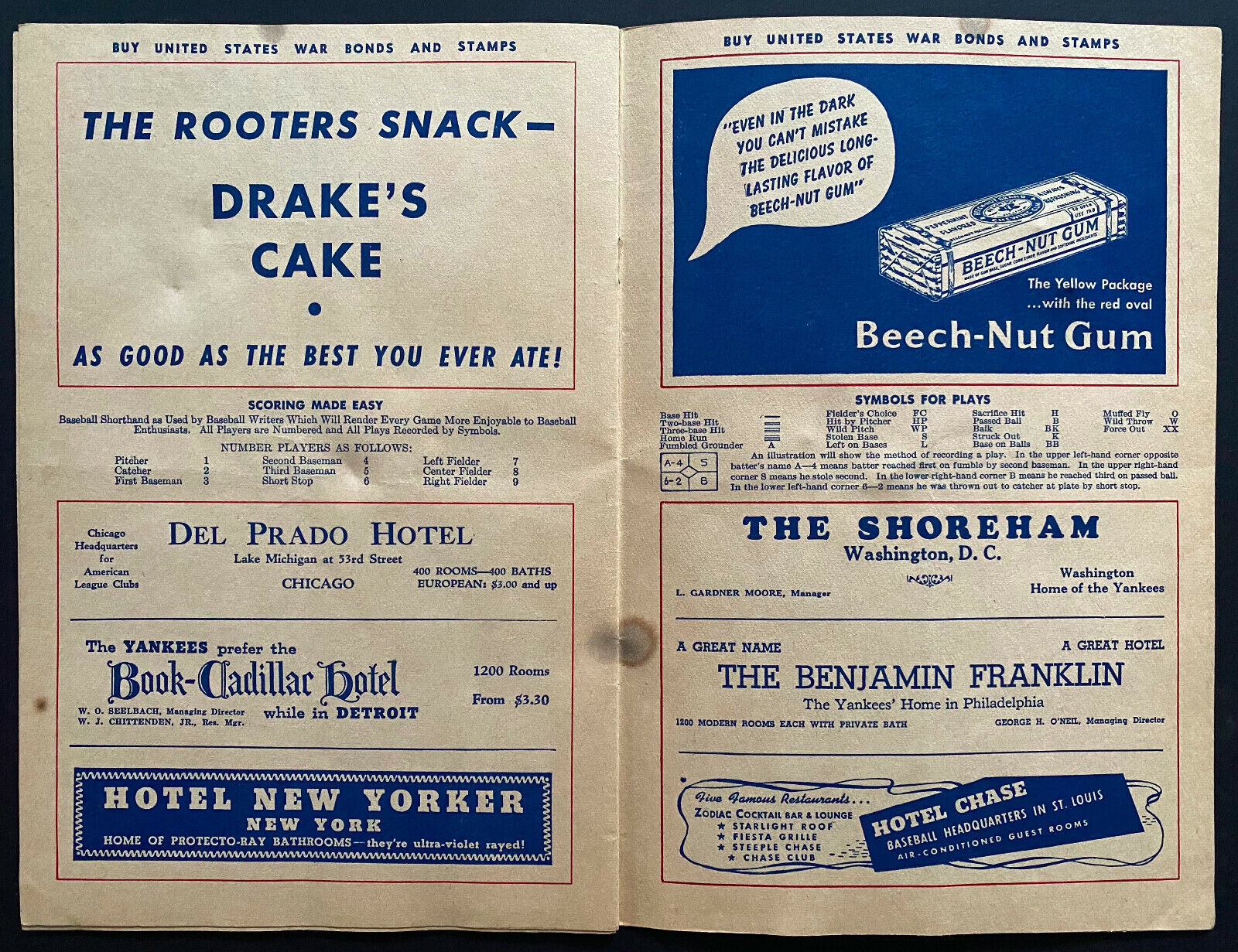 - 1942 New York Yankees MLB Baseball Program vs Philadelphia Athletics
