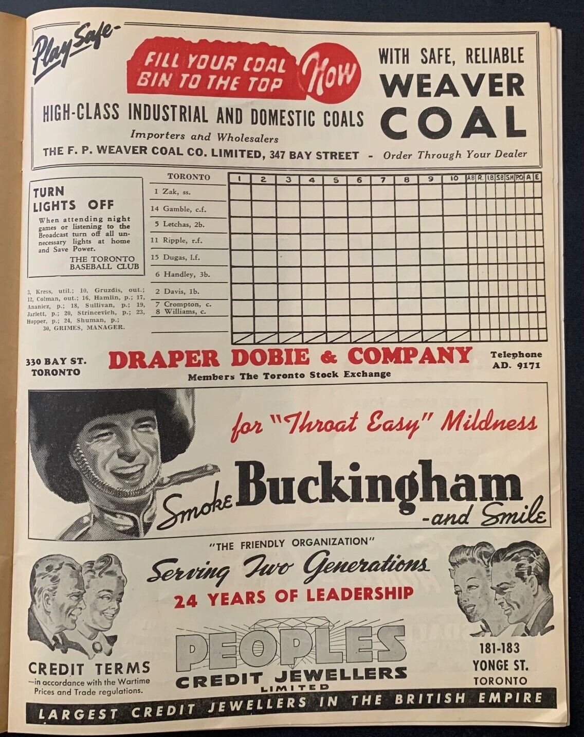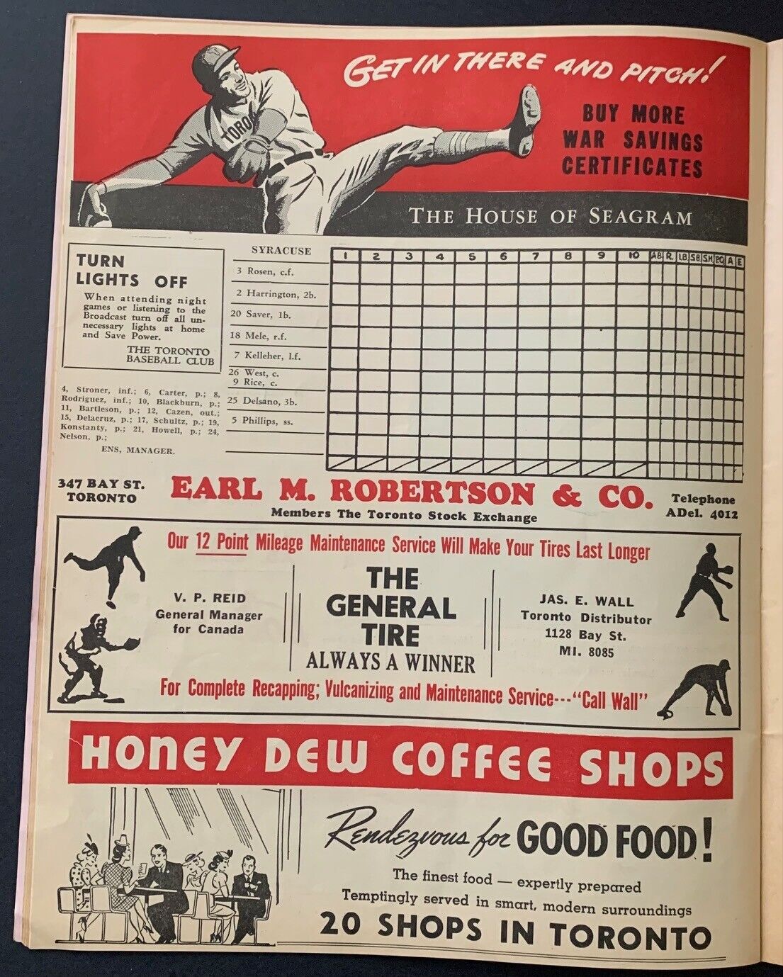 - 1943 Maple Leaf Stadium Baseball Program Maple Leafs vs Syracuse Chiefs