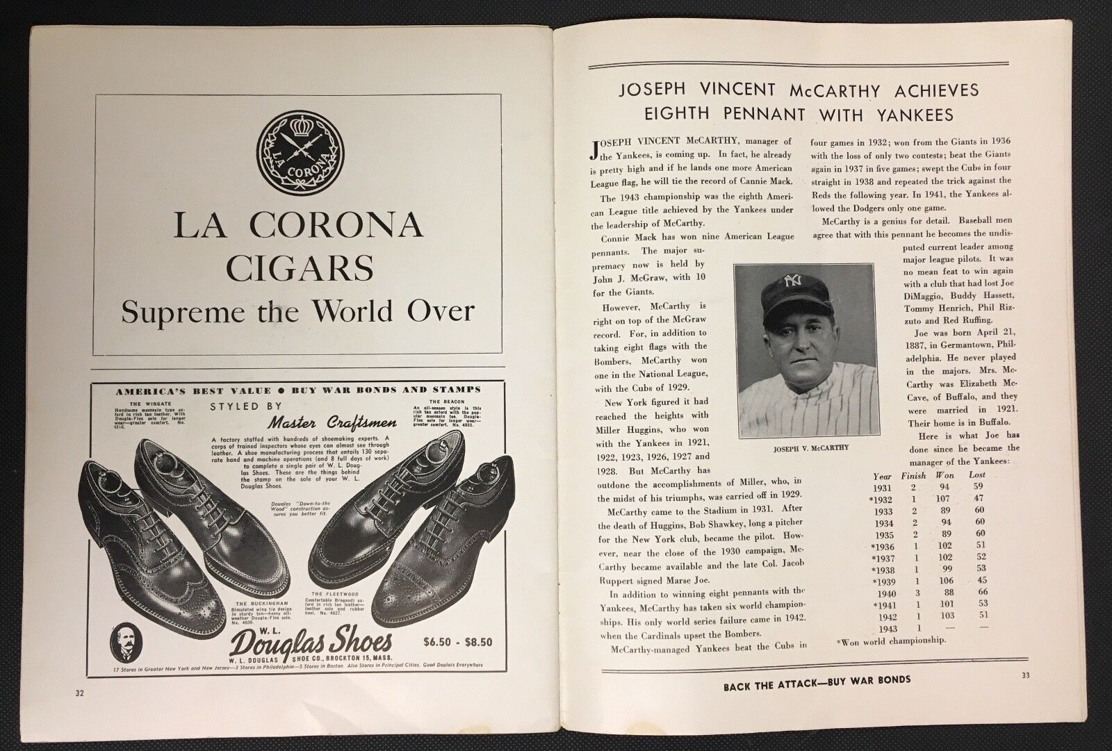 - 1943 World Series baseball program from Yankee Stadium in New York