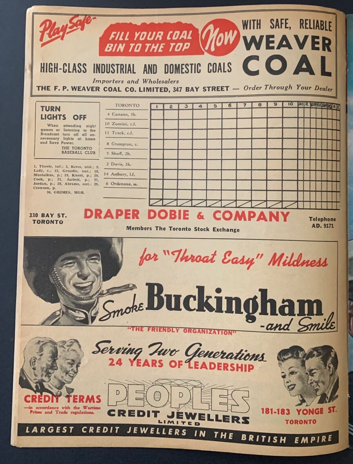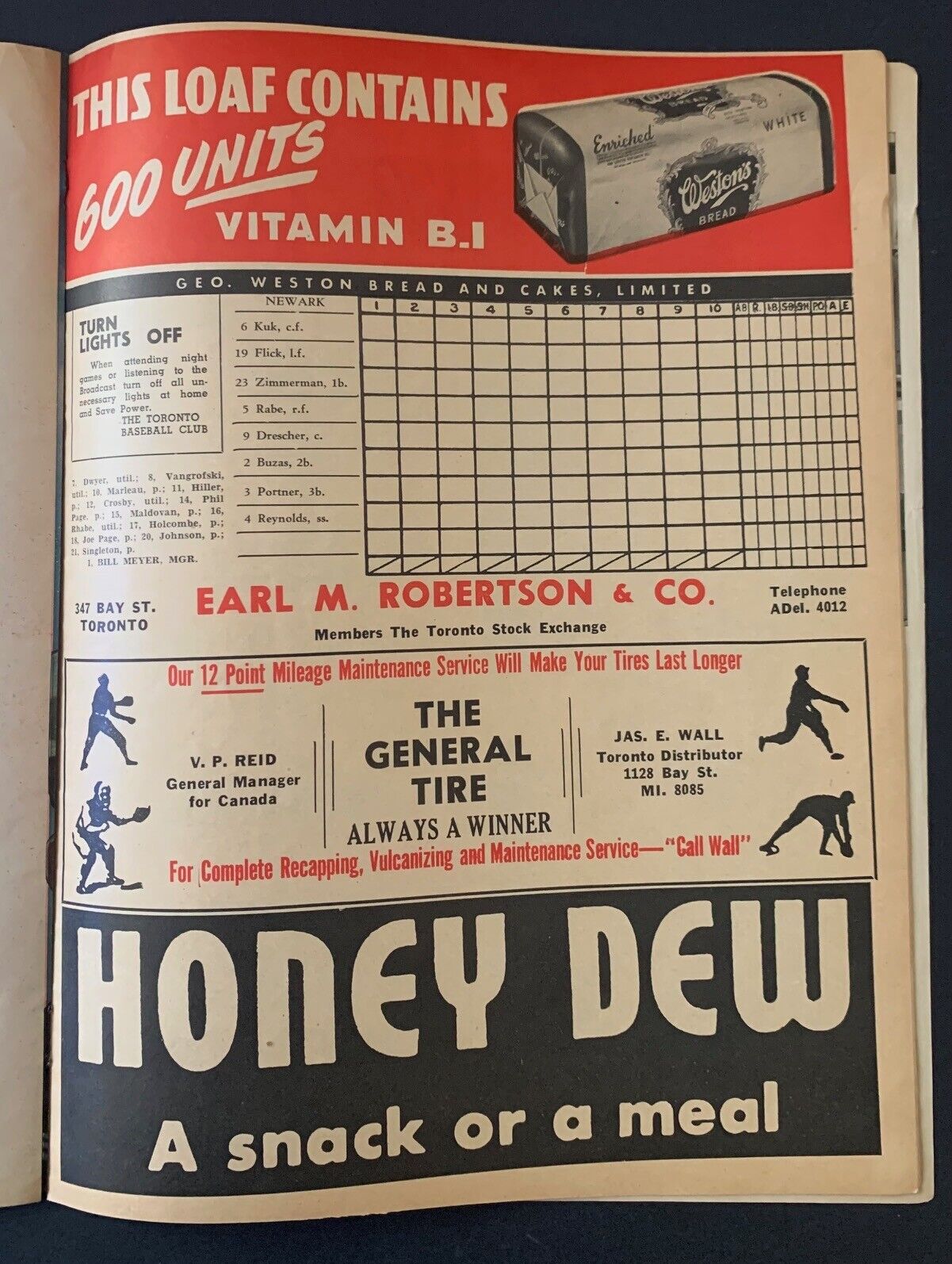 1944 Maple Leaf Stadium Baseball Program Maple Leafs vs Newark Bears Vintage