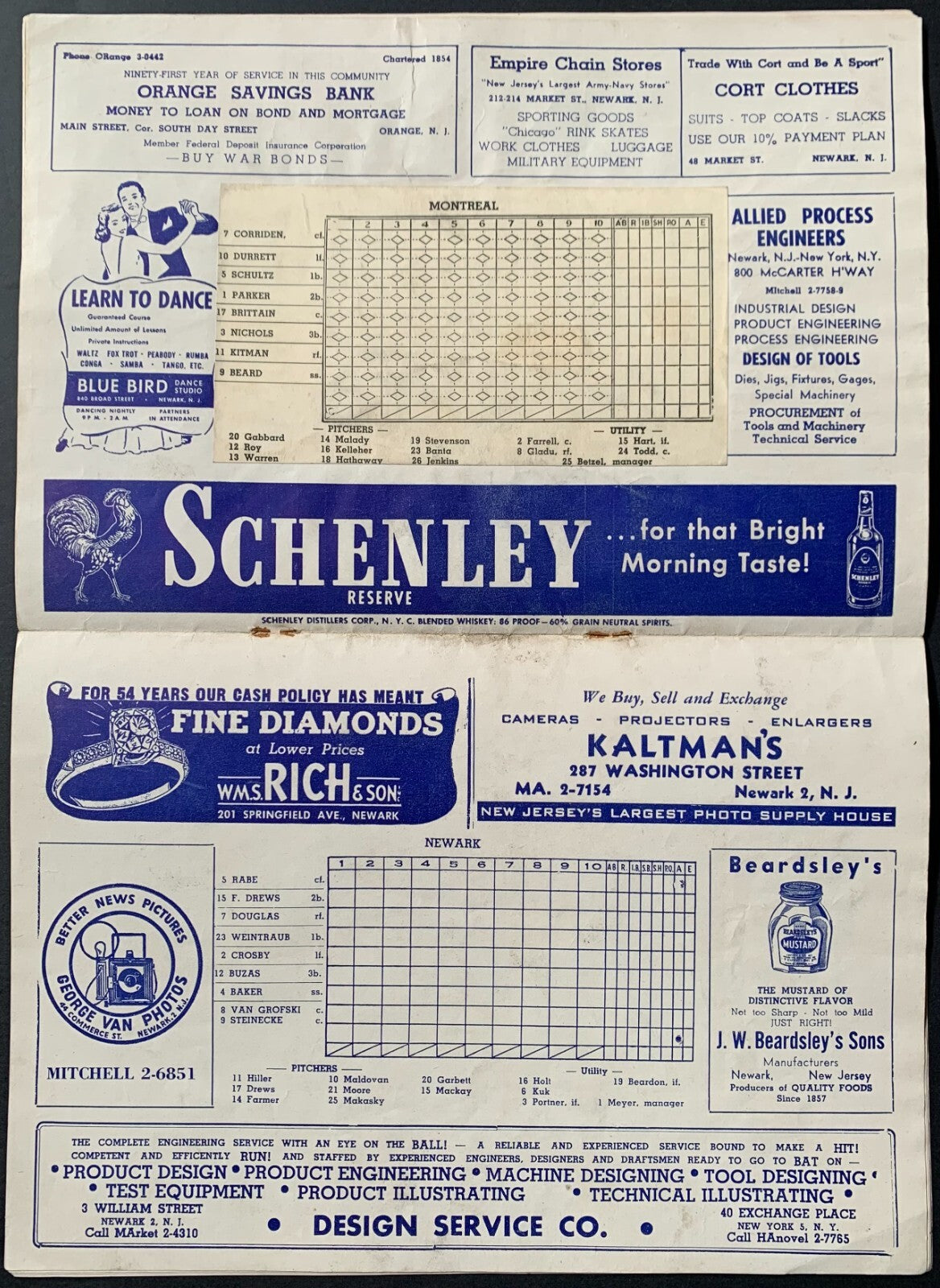 - Program for game at Ruppert Stadium between the Newark Bears and Montreal Royals
