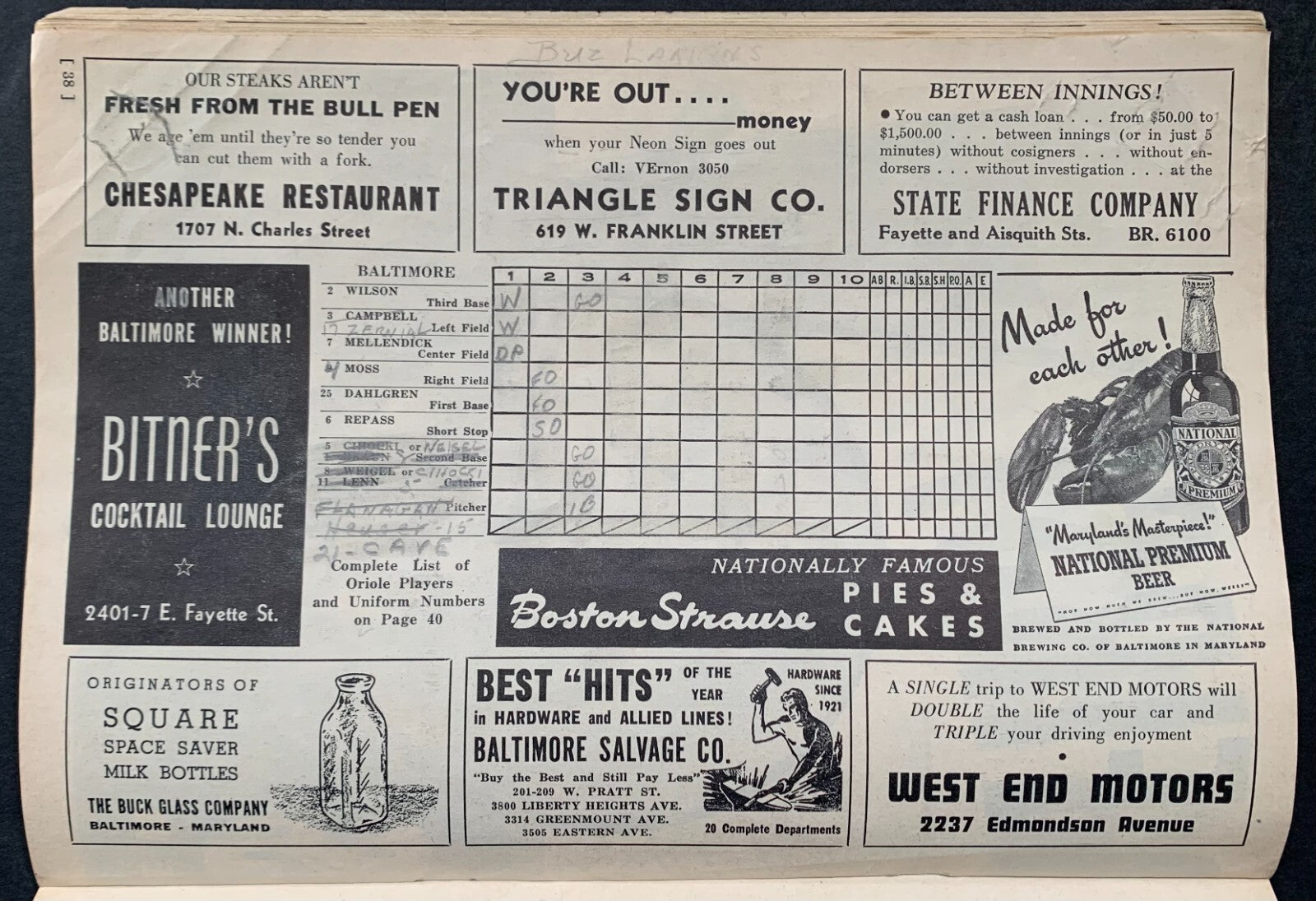 1947 Baltimore Orioles International League Baseball Program Royals Campanella