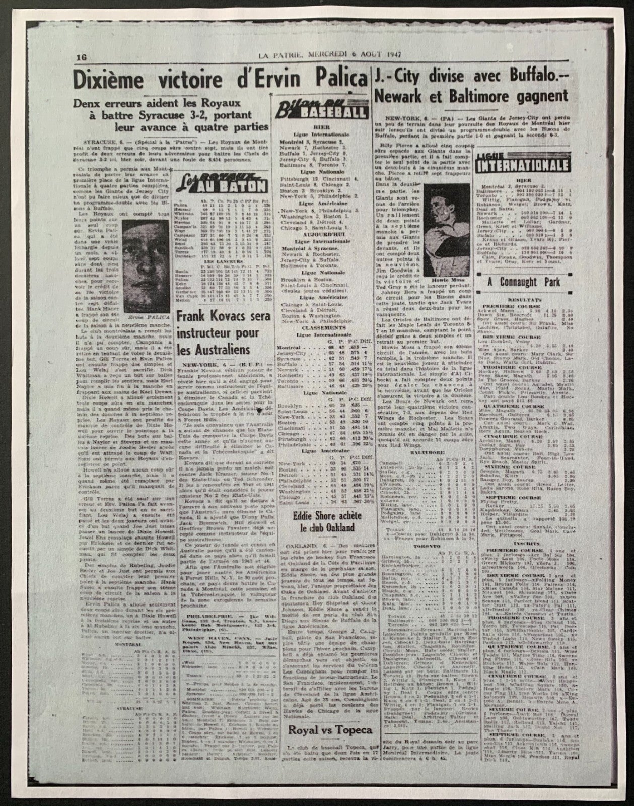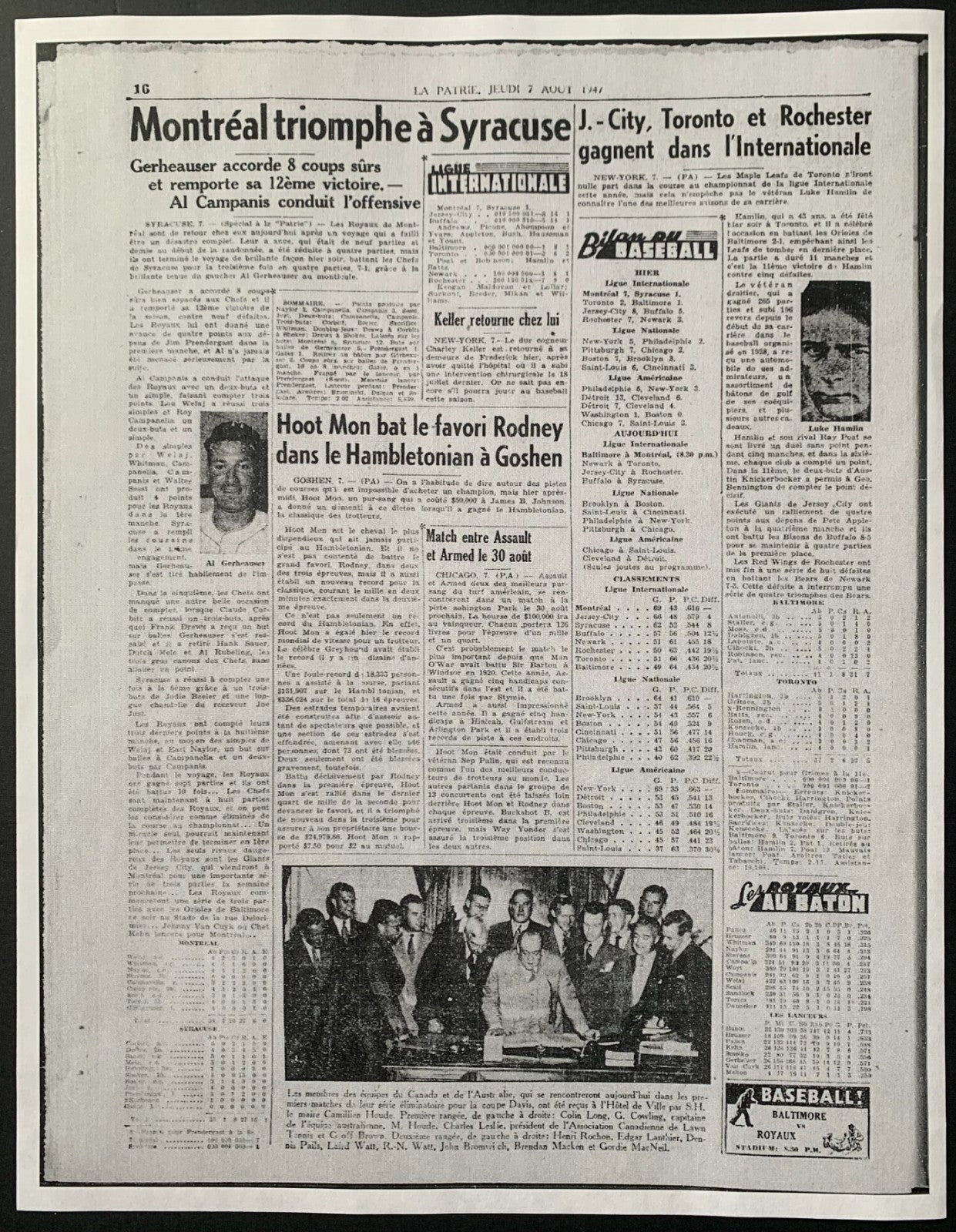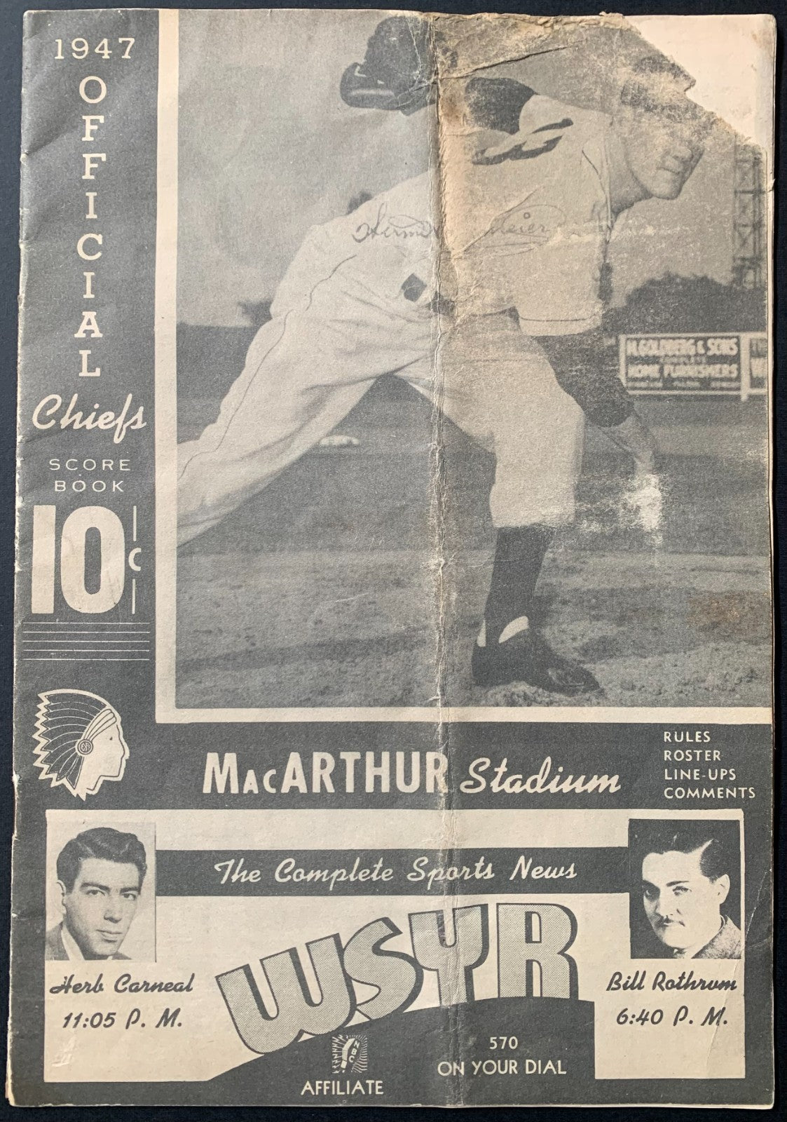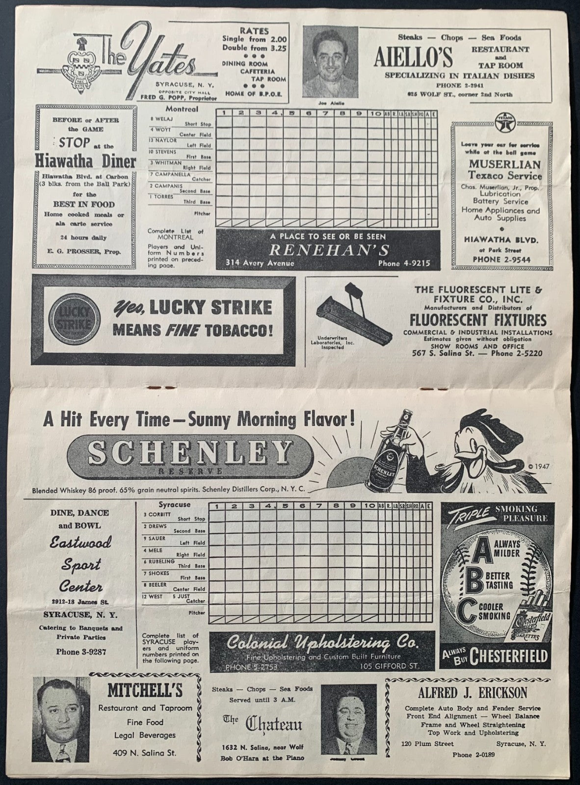 - Program for International League Baseball game on Aug. 5th or 6th, 1947 between the Montreal Royals and Syracuse Chiefs at MacArthur Stadium. News summaries included for both games. Montreal wins 7-1 & 3-2. Montreal's Roy Campanella in Royals lineup