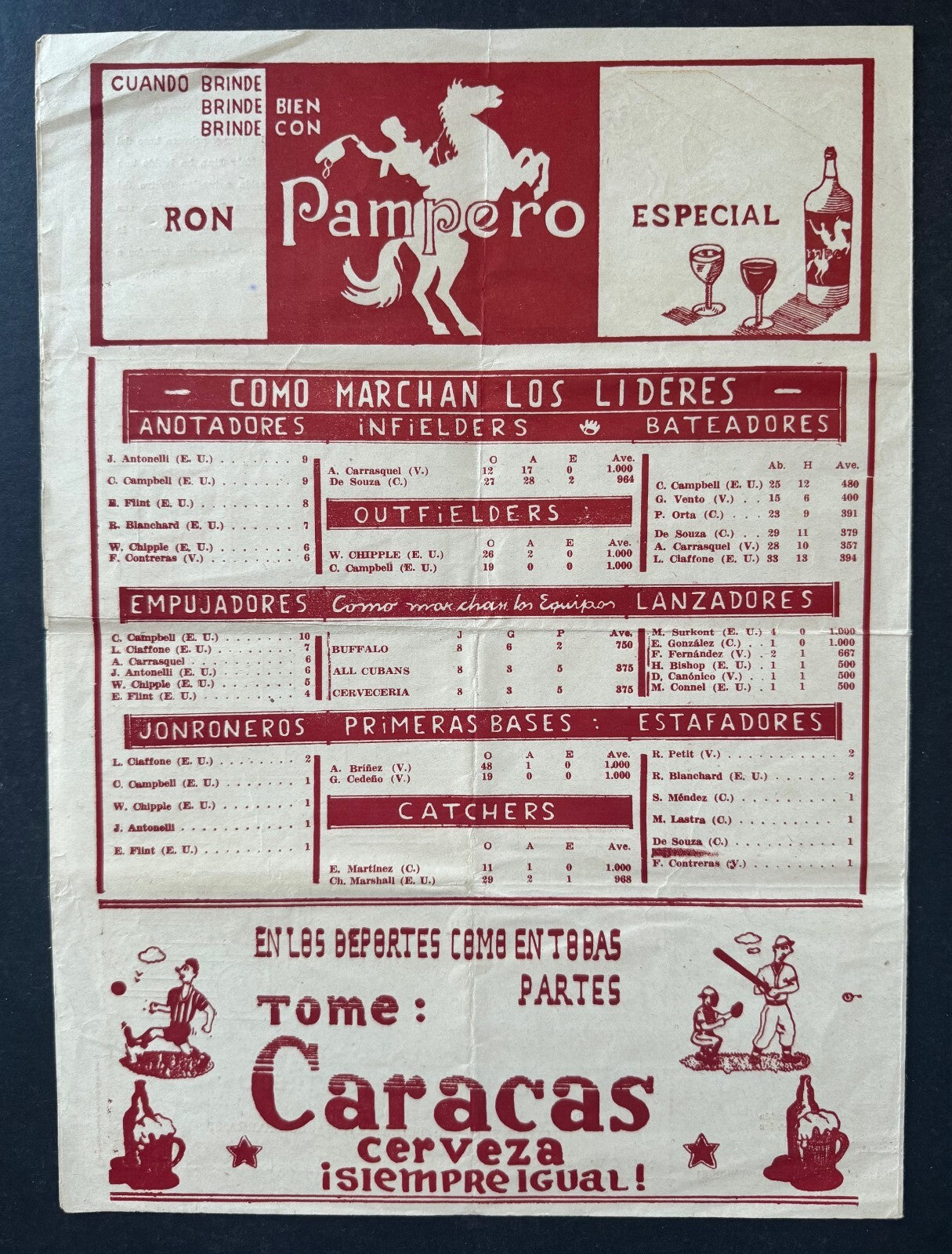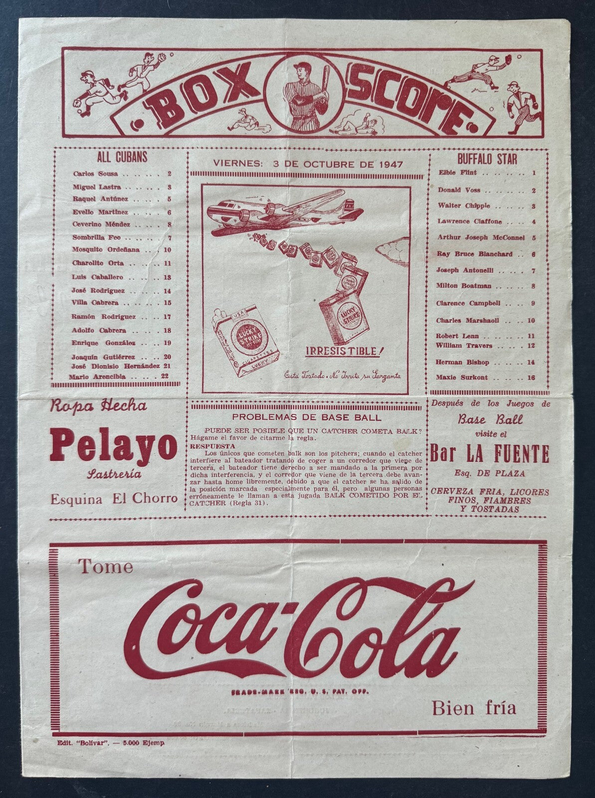 - 1947 Venezuelan Inter American Baseball Series Program Cuba Vs Buffalo All Stars