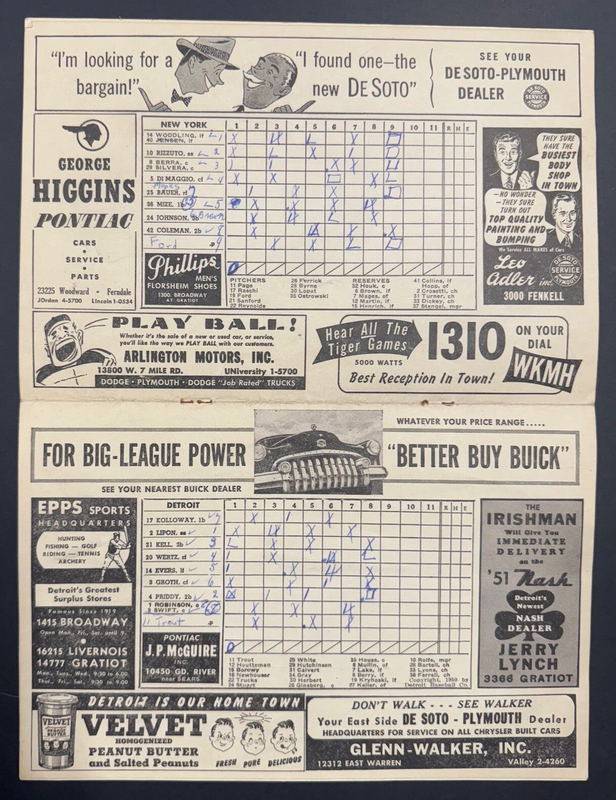 1950 Briggs Stadium Program MLB Baseball New York Yankees Detroit Tigers