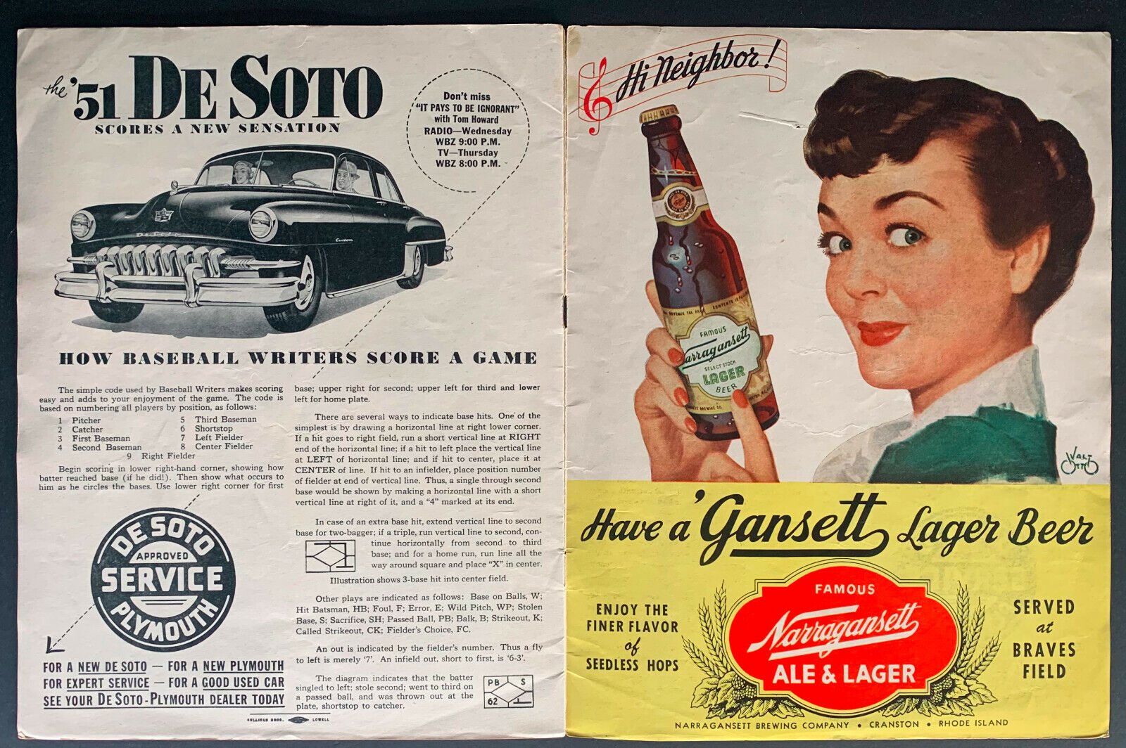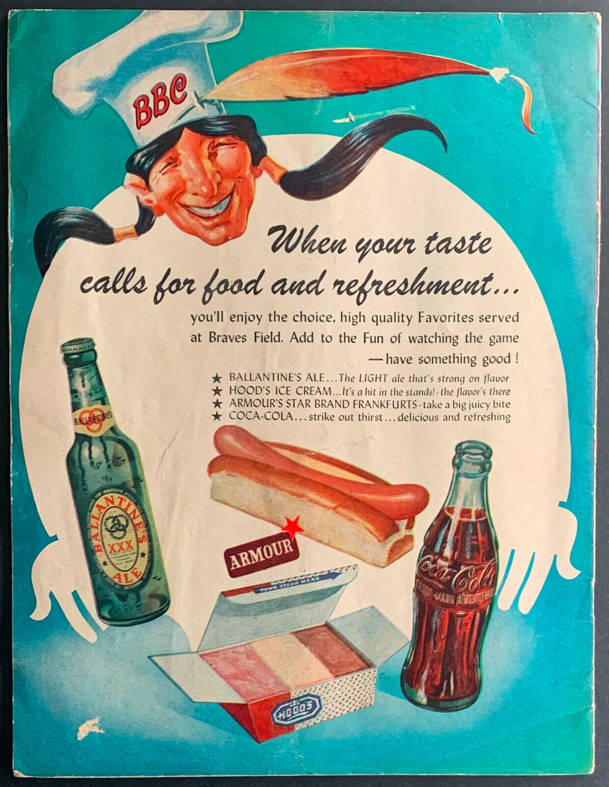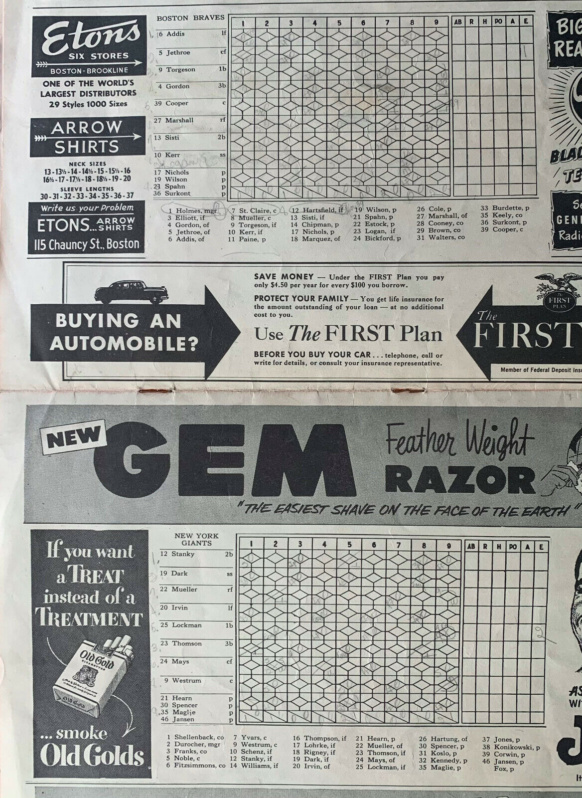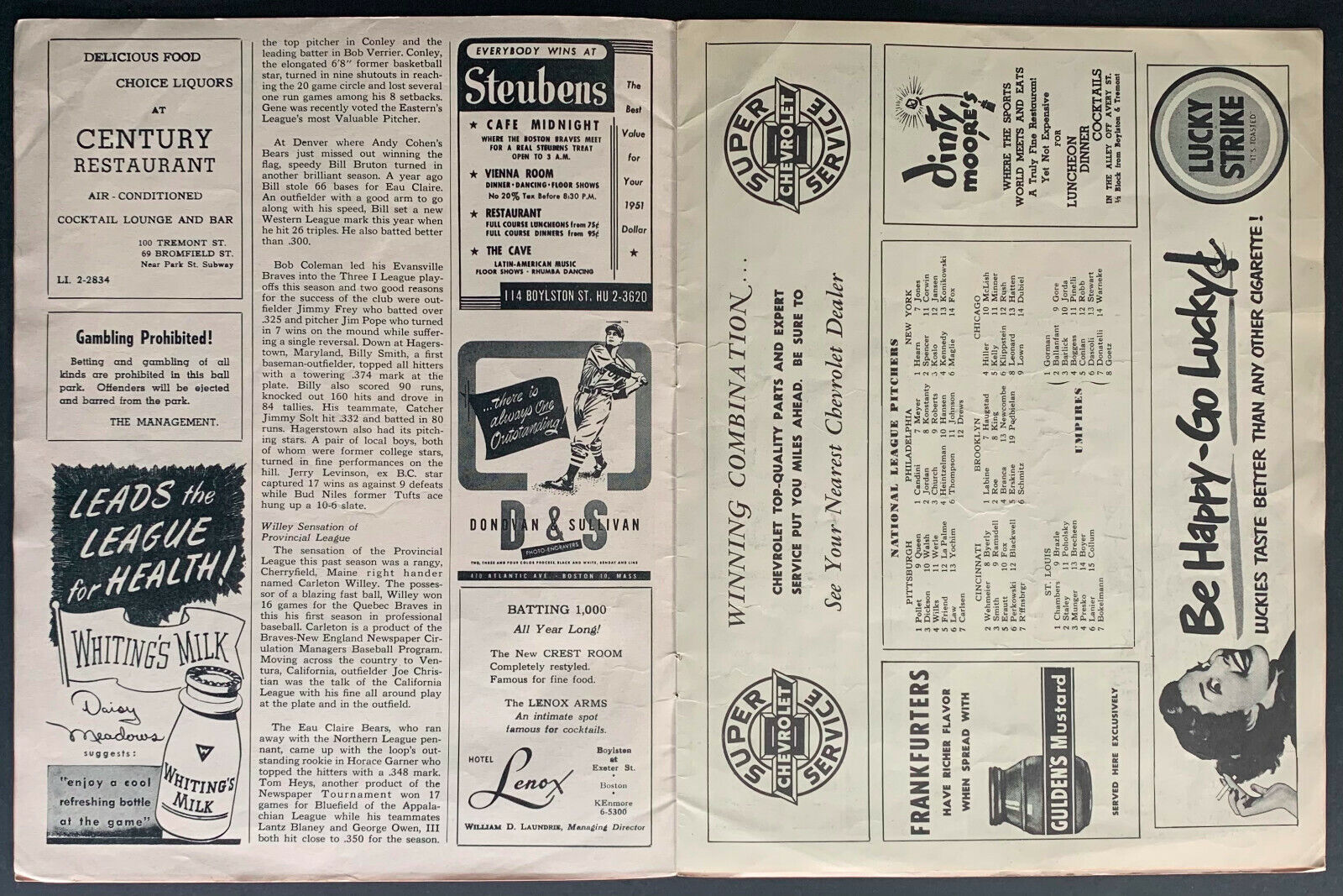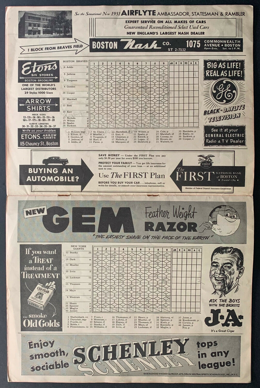 - 09/1951 Boston Braves Baseball Program Vs Giants Shutout 3-0 Willie Mays In Lineup