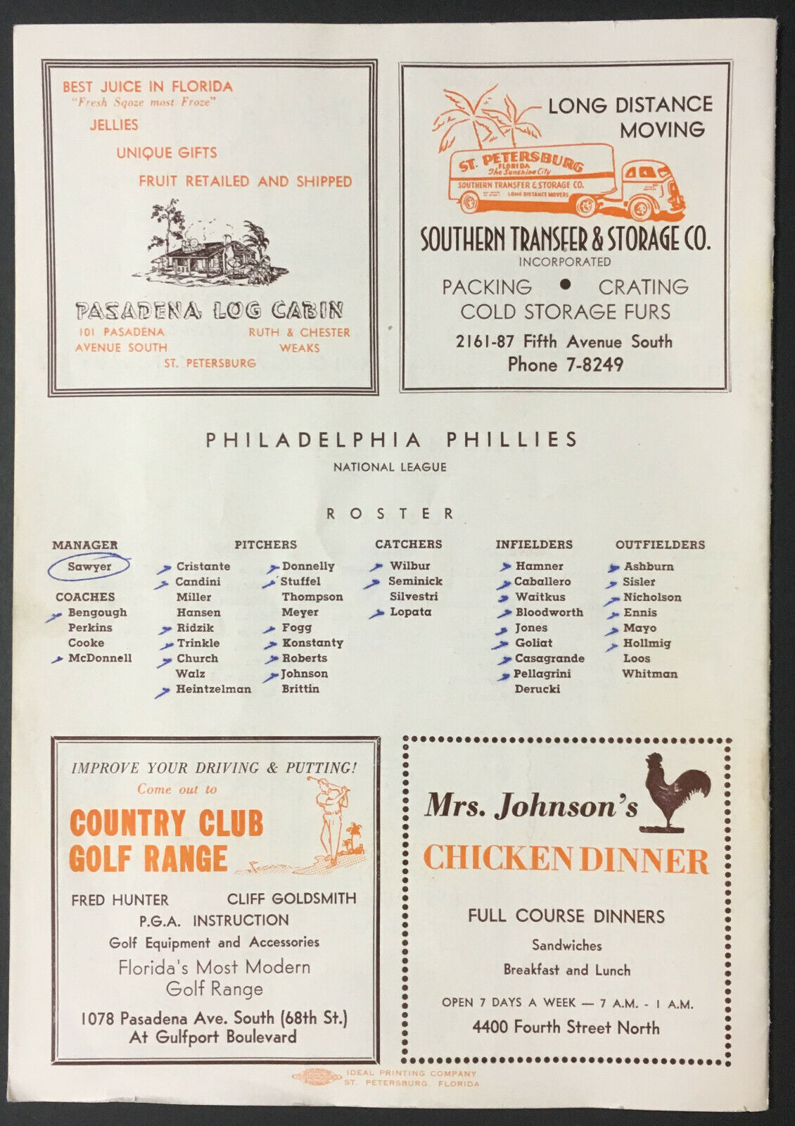 - 1951 St. Louis Cardinals Major League baseball exhibition game program vs Philadelphia Phillies