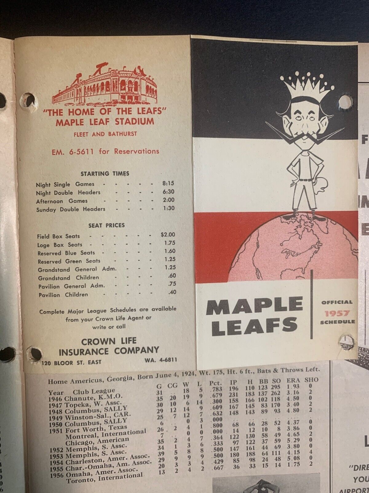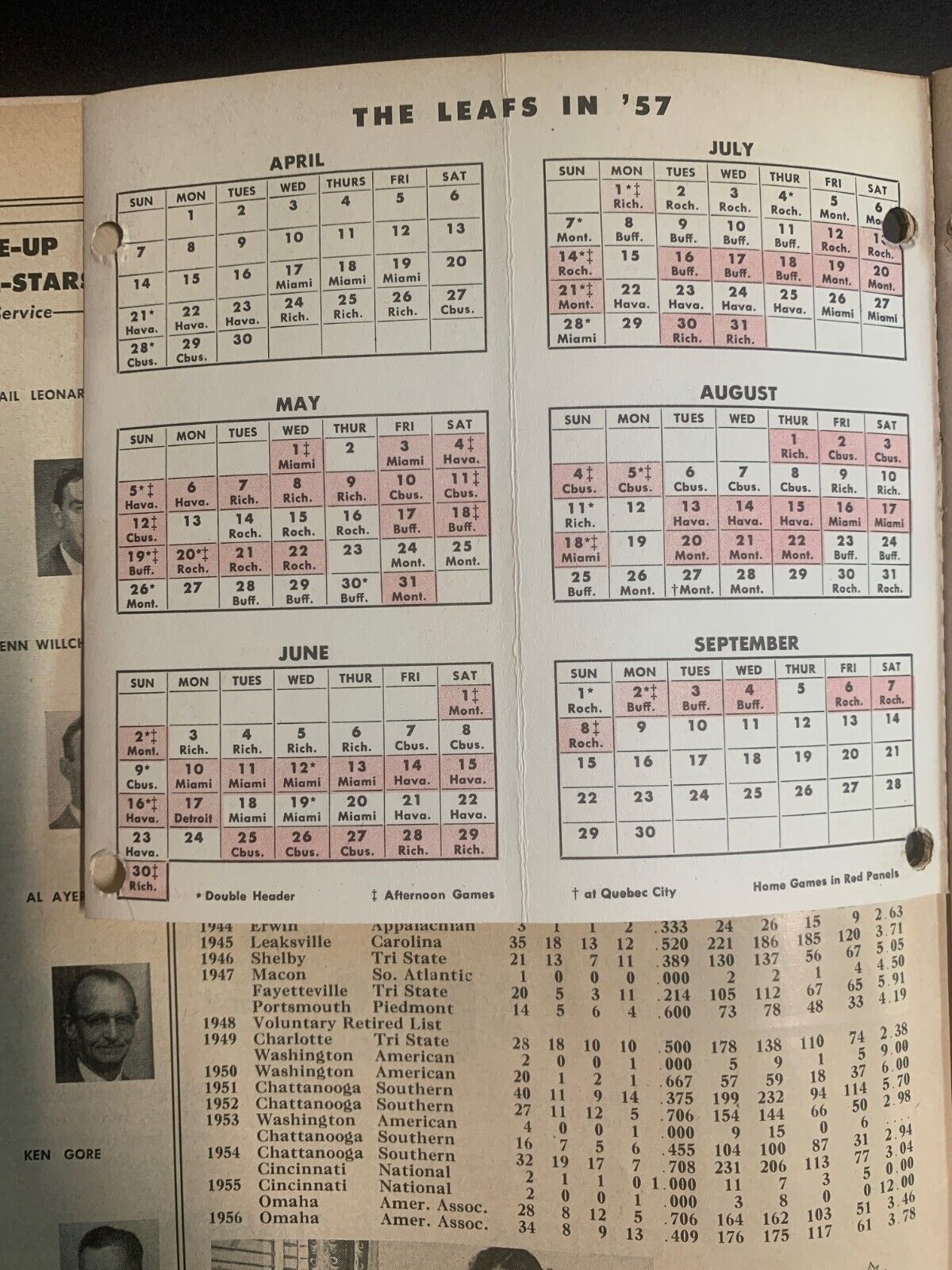 • May 1st, 1957 Toronto Maple Leaf Baseball Home Opener Program with Included 1957 Season Pocket Schedule