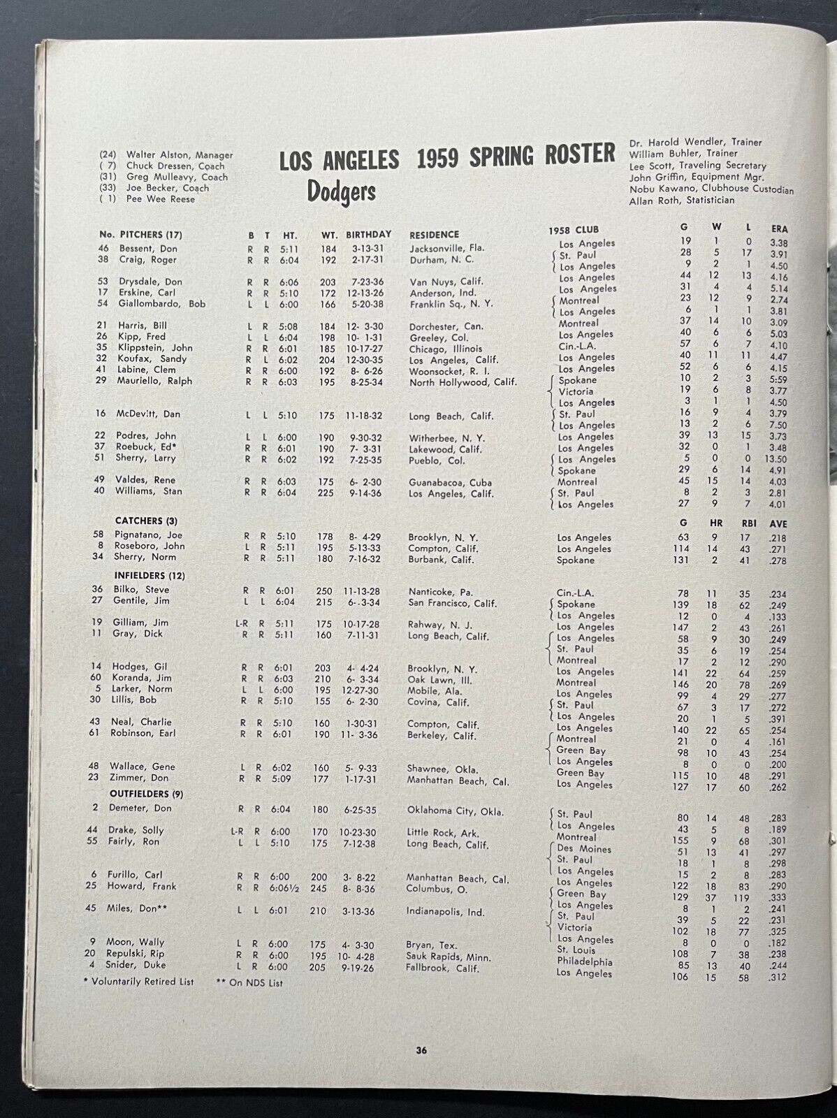 - 1959 LA Dodgers MLB Baseball Yearbook
