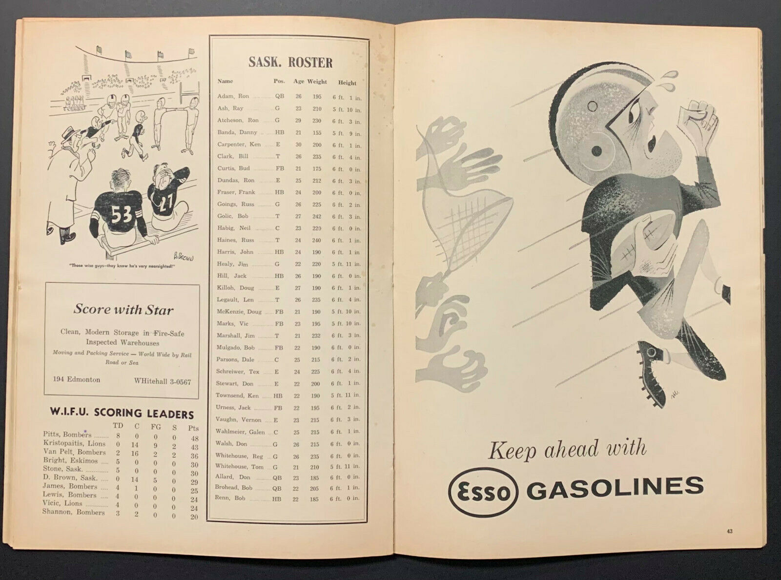 1959 Winnipeg Blue Bombers Vs Saskatchewan Roughriders CFL Football Program