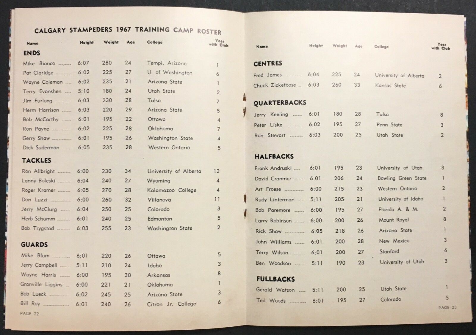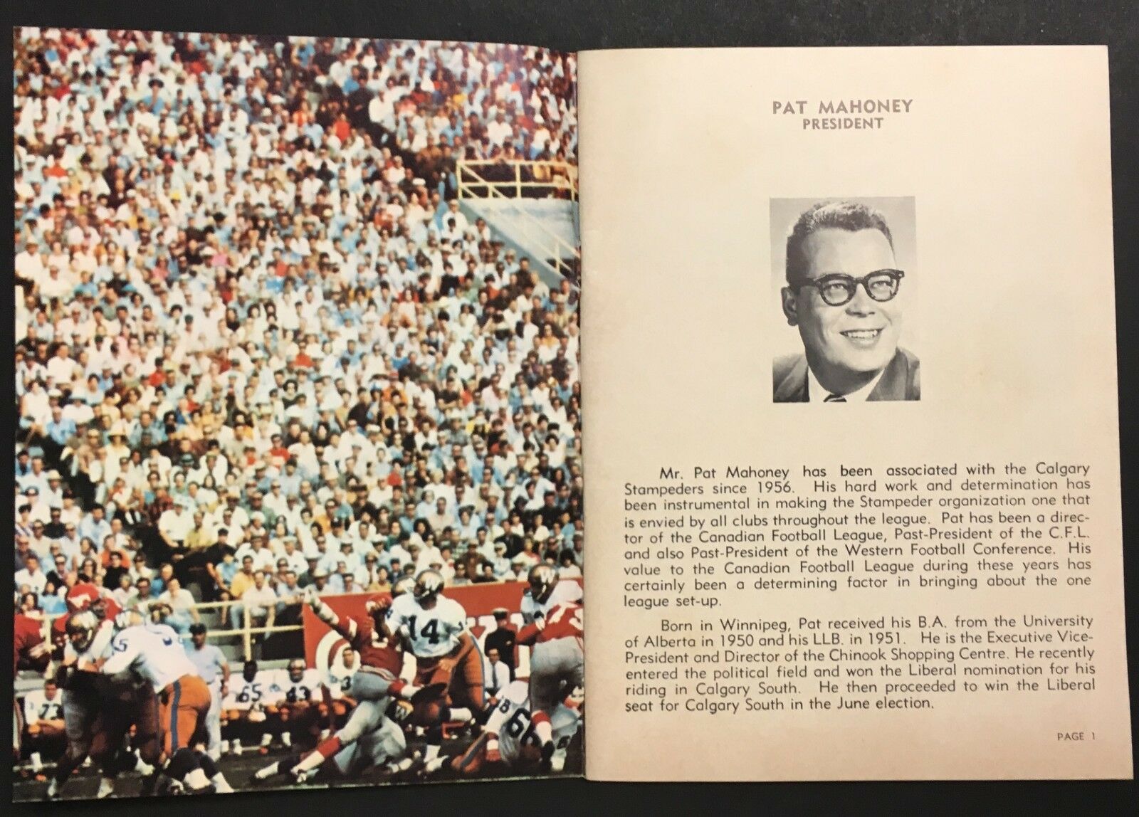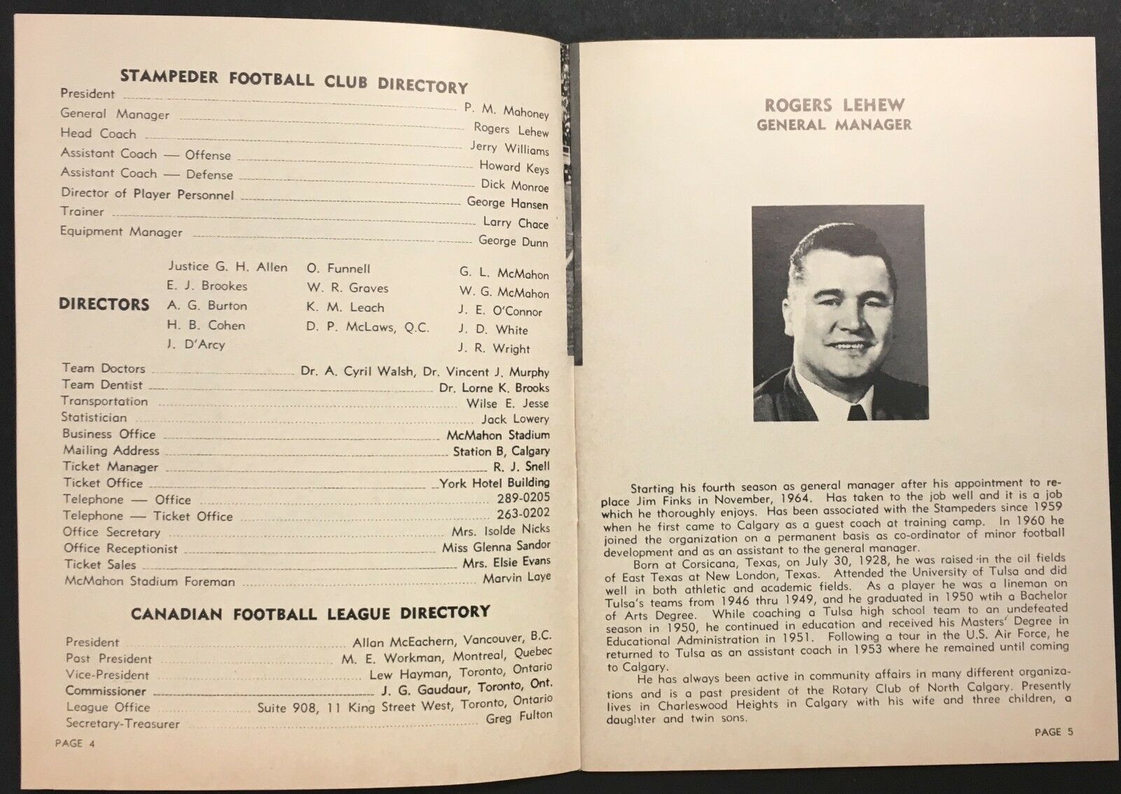 - 1968 Calgary Stampeders CFL football media guide/yearbook with original mailing envelope