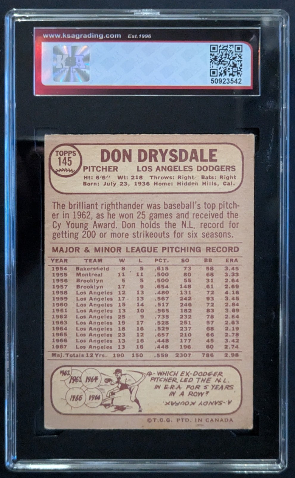 - 1968 O-Pee-Chee #145 Don Drysdale LA Dodgers Baseball Card