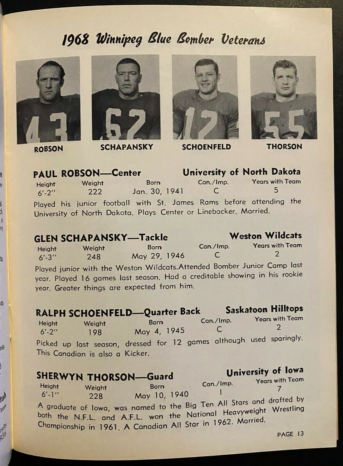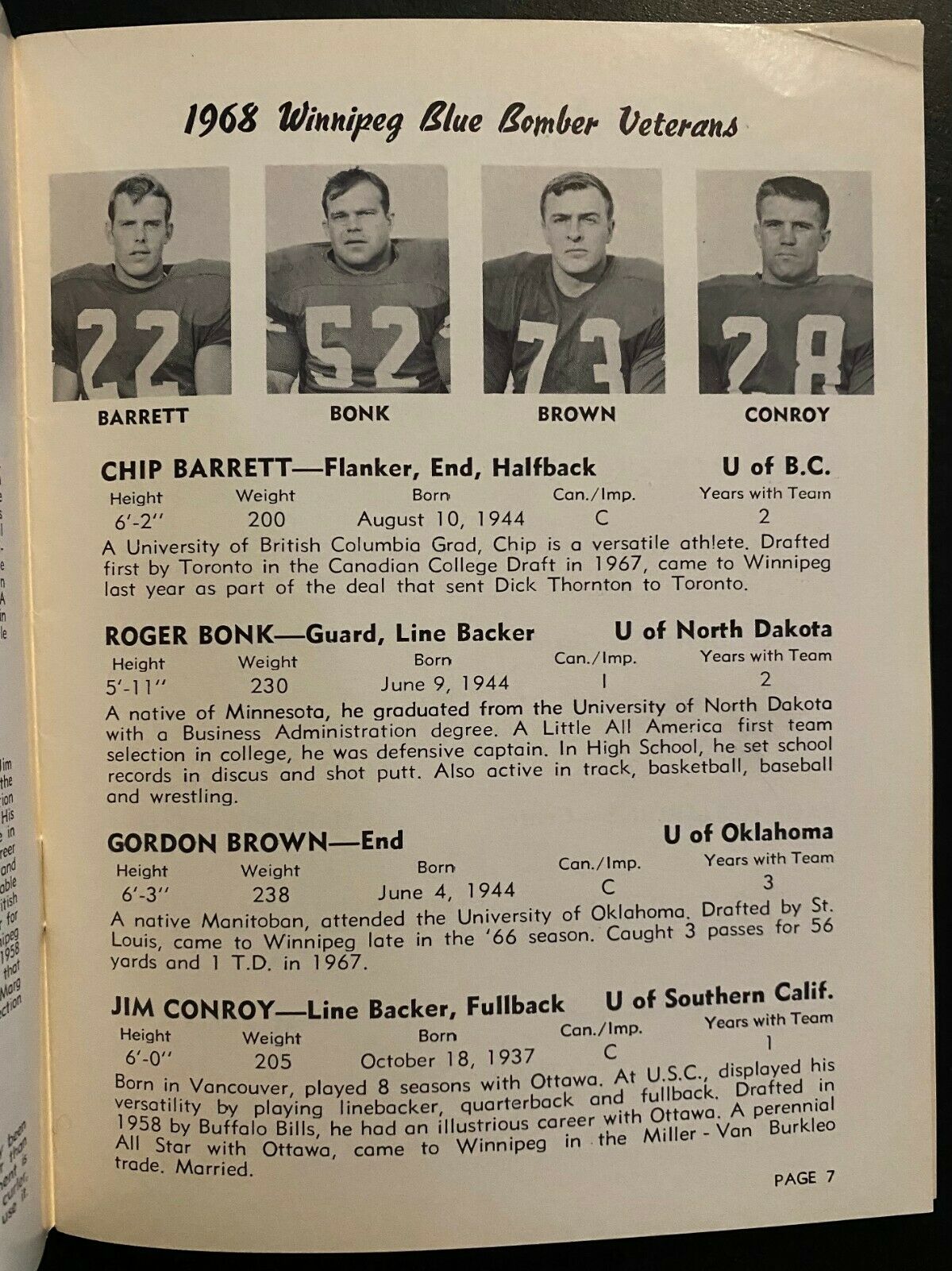 - 1968 Canadian Football League Winnipeg Blue Bombers media guide