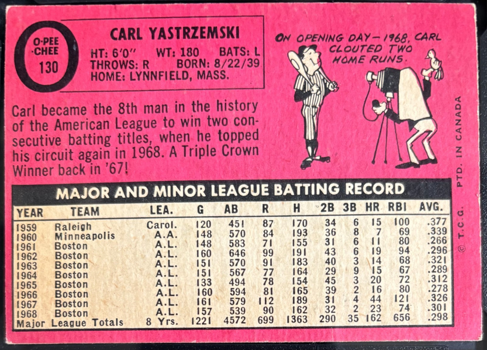 - 1969 O-PEE-CHEE (OPC) #130 Carl Yastrzemski vintage baseball card