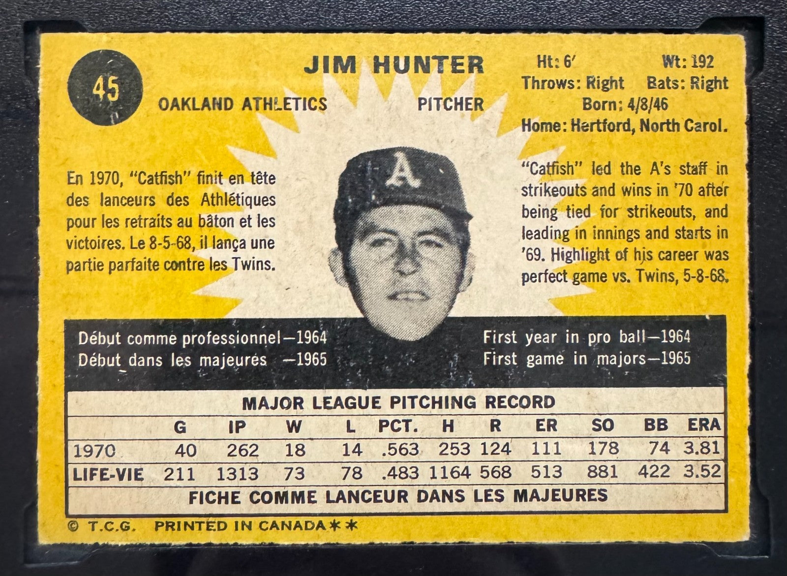 - 1971 O-Pee-Chee #45 Jim Hunter Oakland Athletics vintage baseball card
