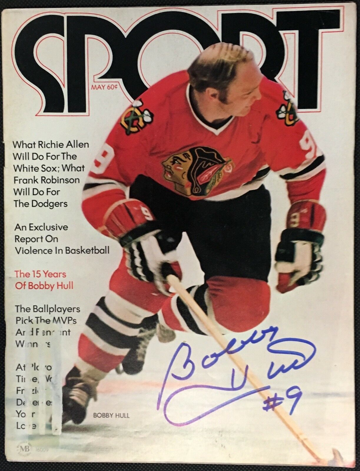 Bobby Hull has autographed the cover in blue felt-tip marker