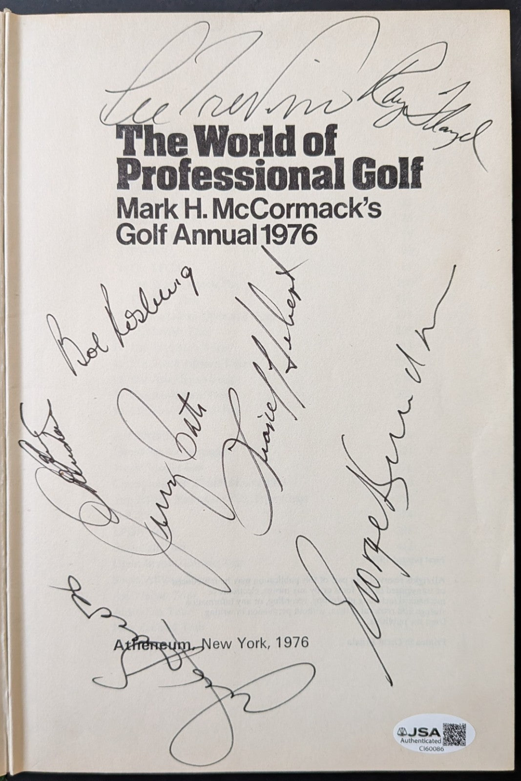 - Hard cover with slip cover "1976 Golf Annual" signed on the title page by 8 PGA stars. Lee Trevino, Ray Floyd, Bob Rosburg, Ben Crenshaw, Jerry Pate, Lionel Hebert, George Knudson and Julius Boros