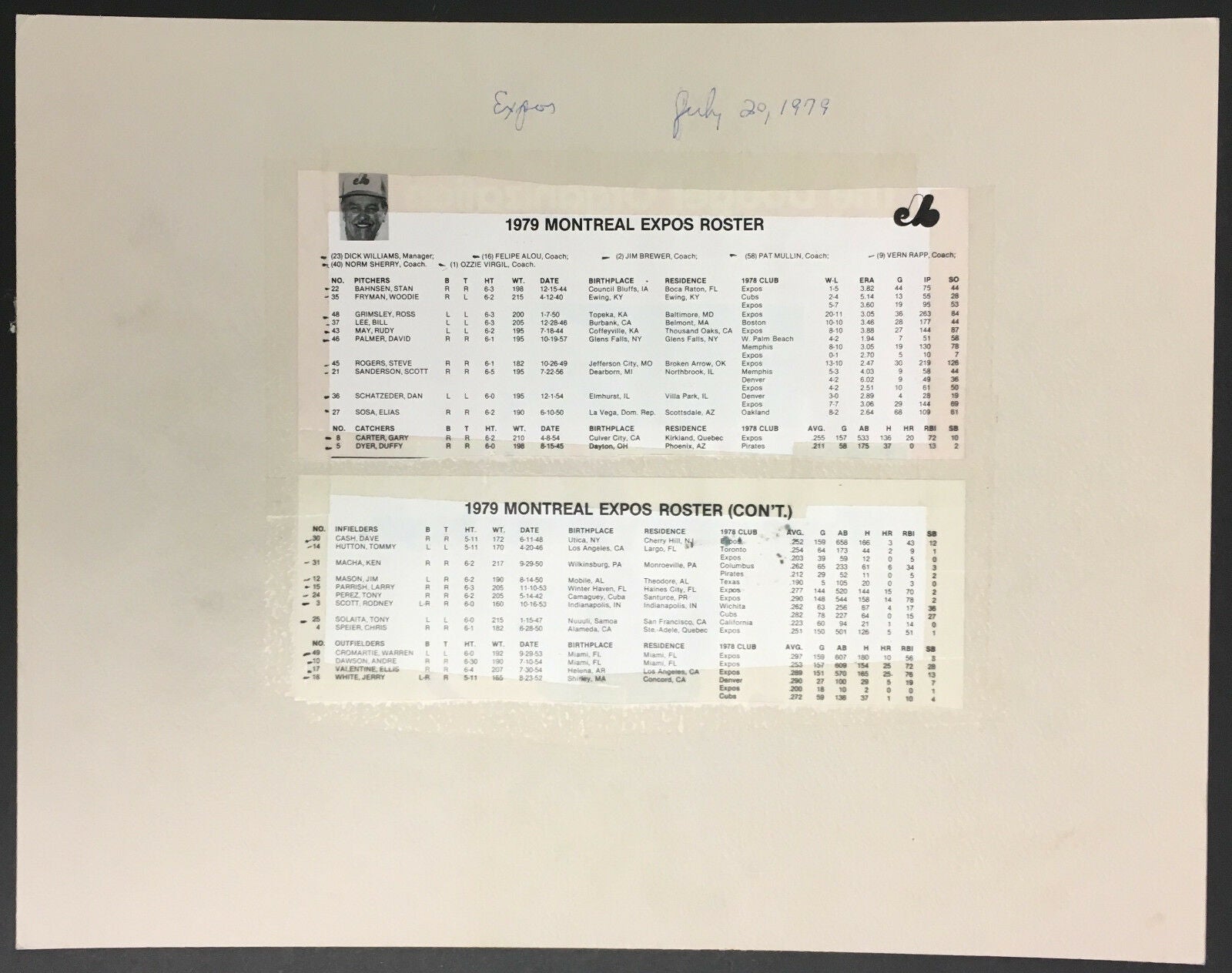 - Vintage 1979 Montreal Expos baseball team signed white illustration board