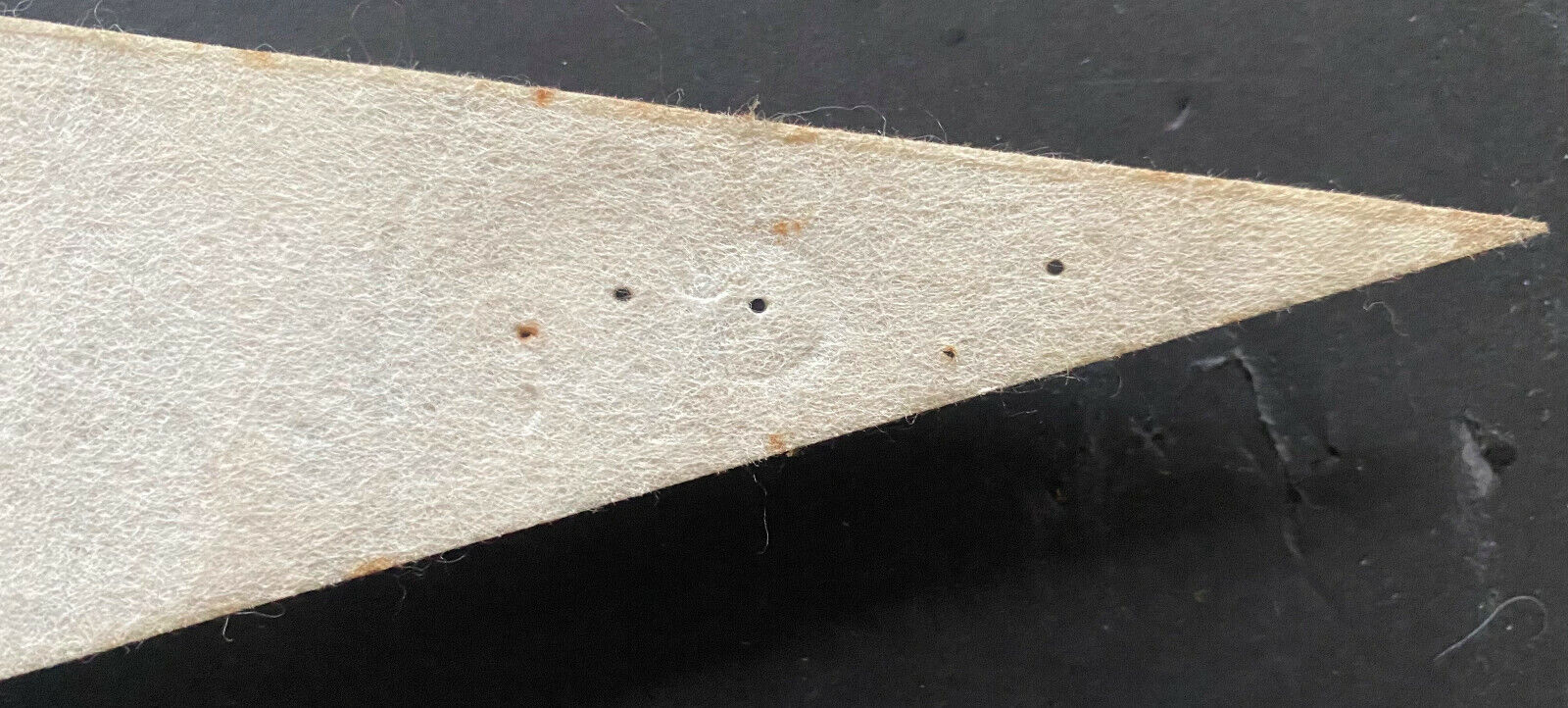 Very good condition; notable soiling throughout, mostly along the edges as well as some pinholes at the corners and at the point as well as one on the top and bottom edges