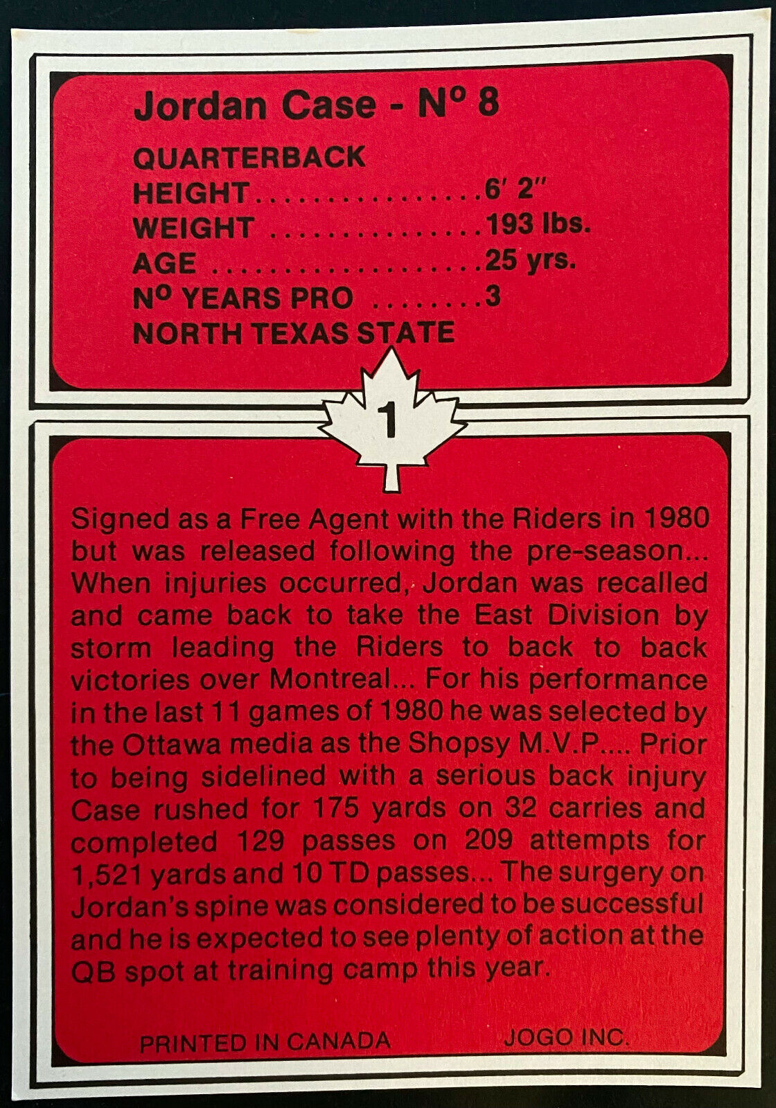 - 1982 Jogo CFL Football Ottawa Rough Riders team card set of 24 cards