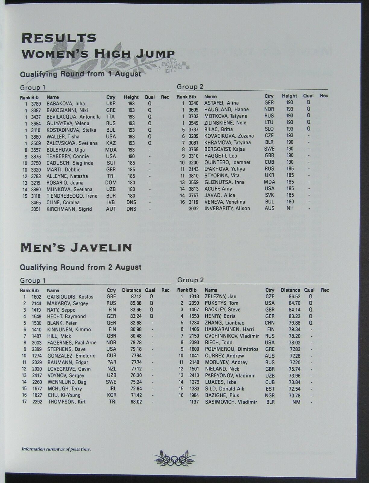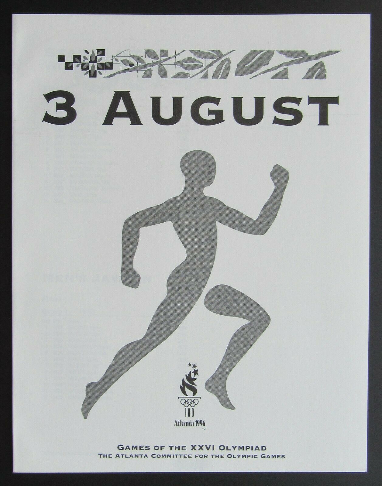 - August 3, 1996 Atlanta Olympics Day 16 Site Program + Track & Field Insert