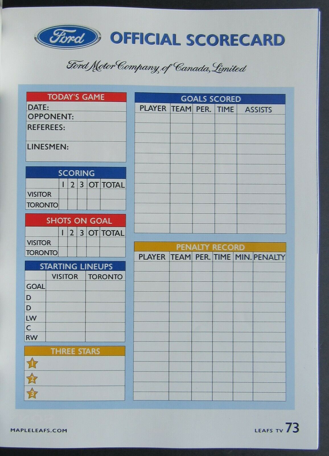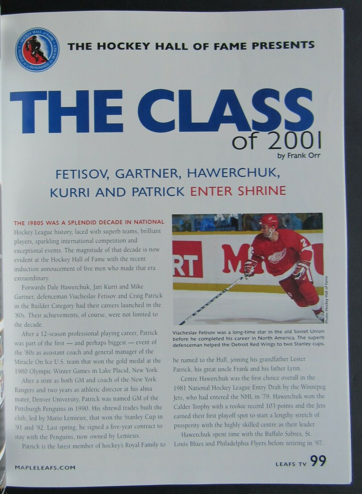• November 3, 2001 Toronto Maple Leafs 75th Anniversary Program @ Air Canada Centre, Toronto