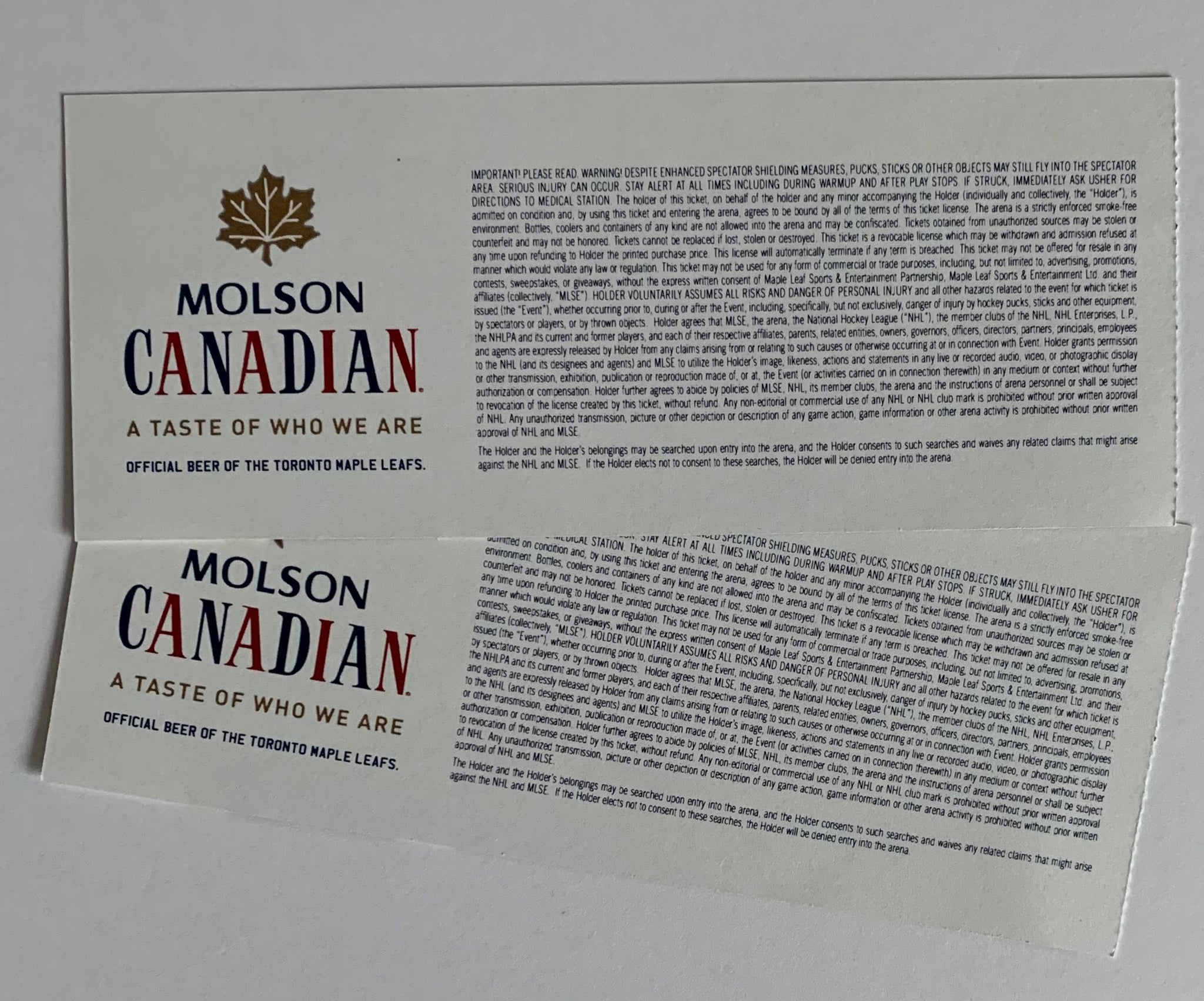 March 17th 2018 Leafs St. Pats Night Commemorative Game Tickets