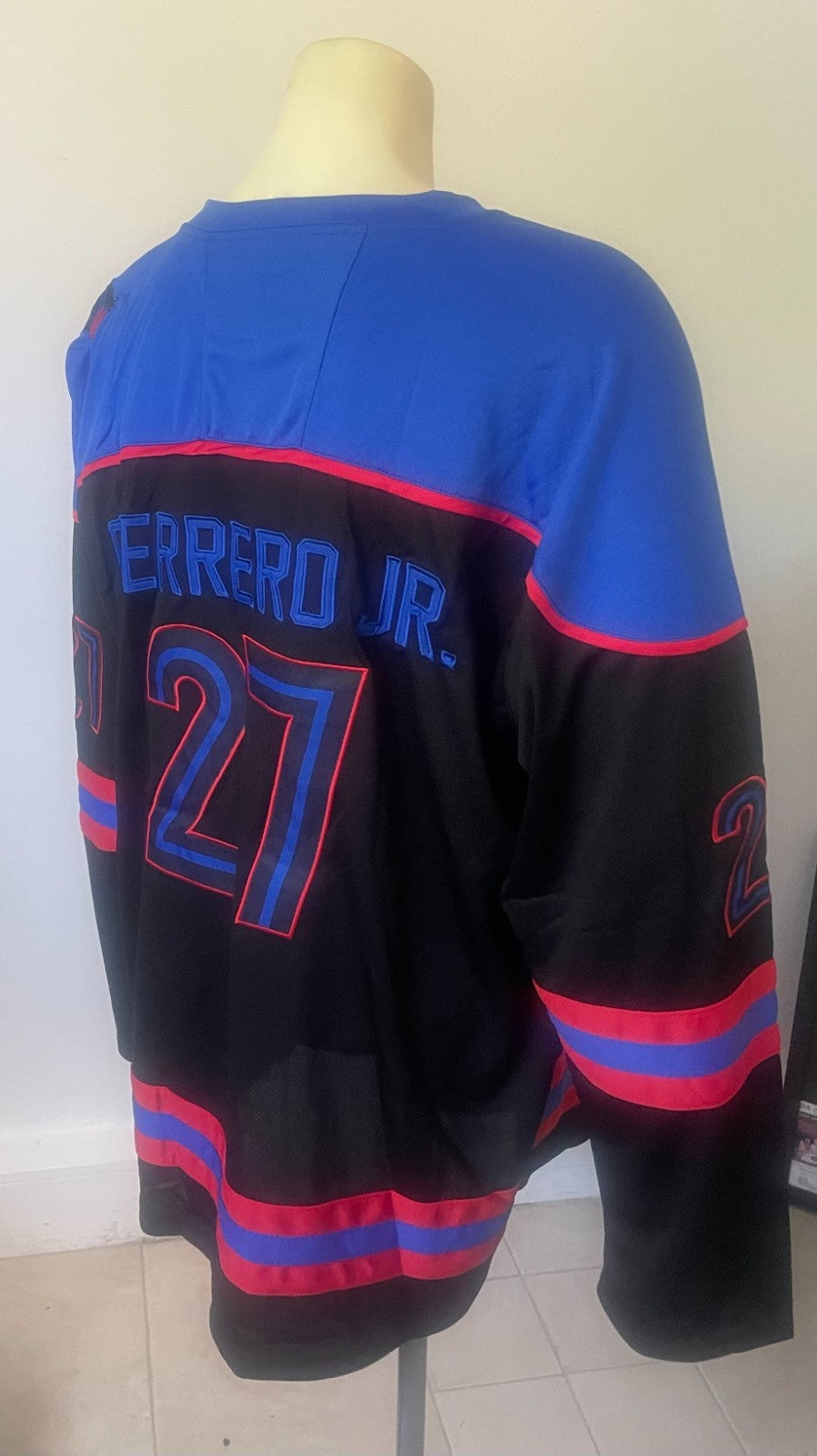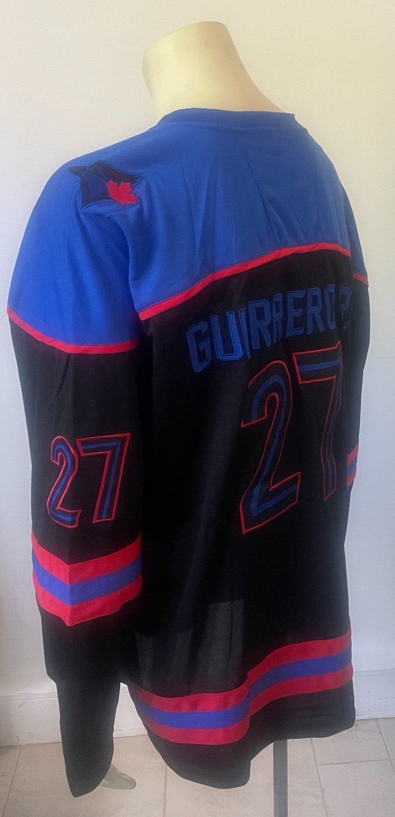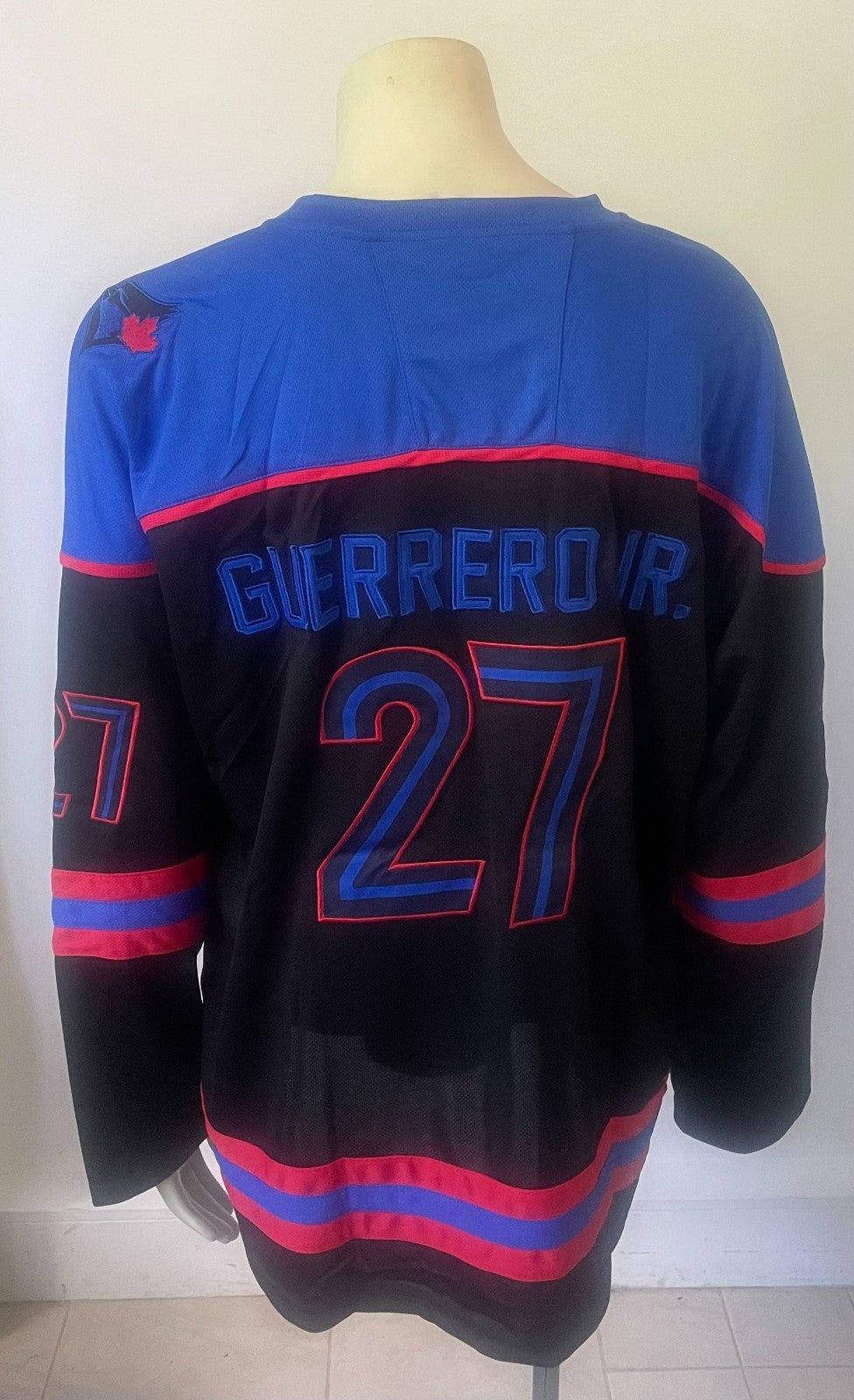 - May 30, 2025 stadium giveaway Vladimir Guerrero Jr. City Connect hockey jersey issued by the Toronto Blue Jays