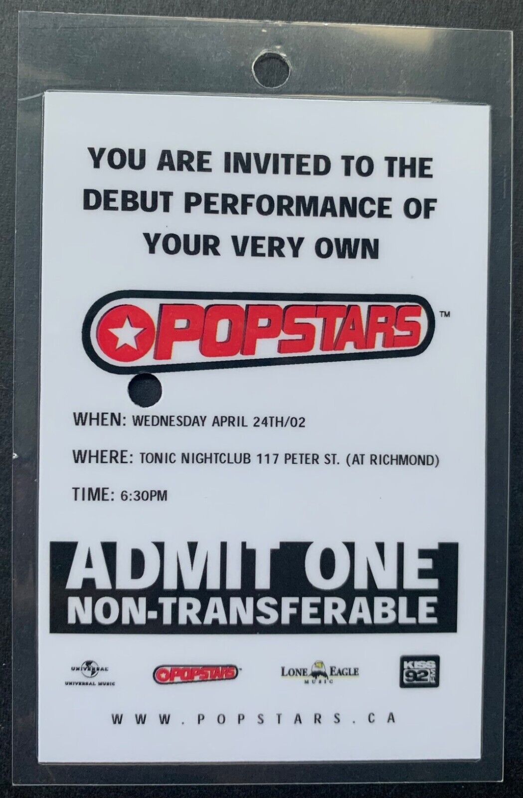 - Popstars back stage pass